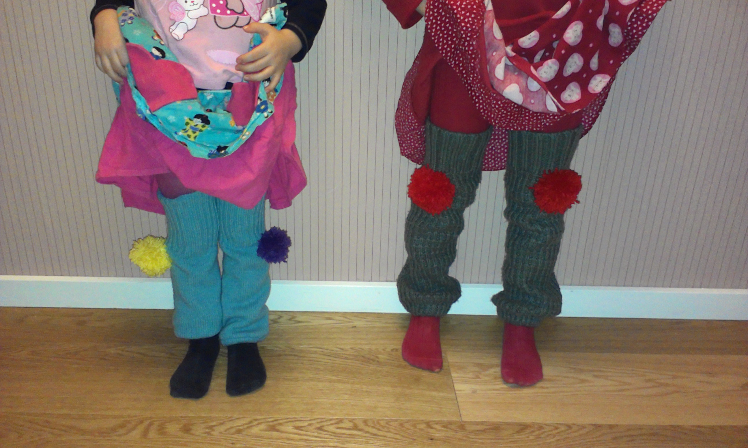 Og benvarmere kunne mine piger også godt tænke sig! Men før vi halsede afsted til H & M eller Føtex for at anskaffe et par til hver, gik vi i gemmerne, for at se, om der var noget, der kunne laves om og blive til smarte benvarmere.