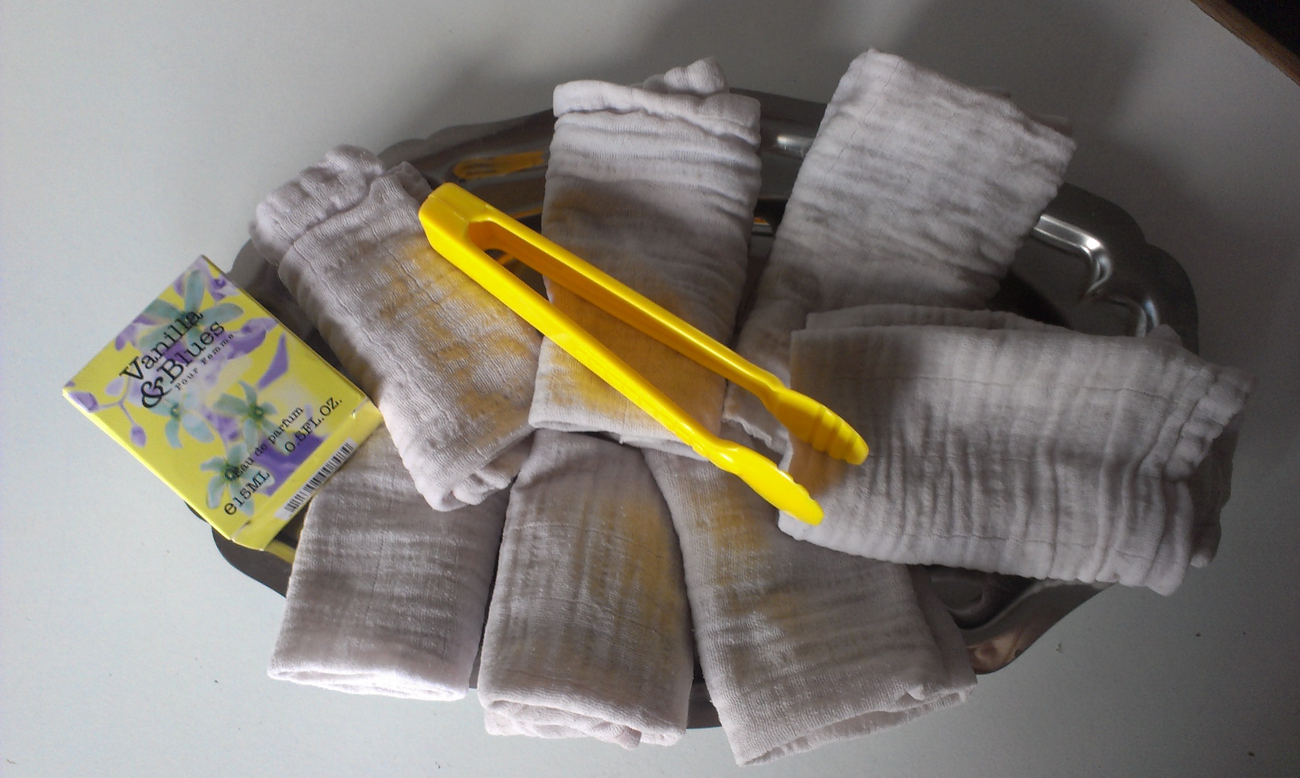 Bægerne er lavet af stykker af papir på 27 x 27 cm., der efterfølgende er foldet i kvadrater på 9 x 9 cm.