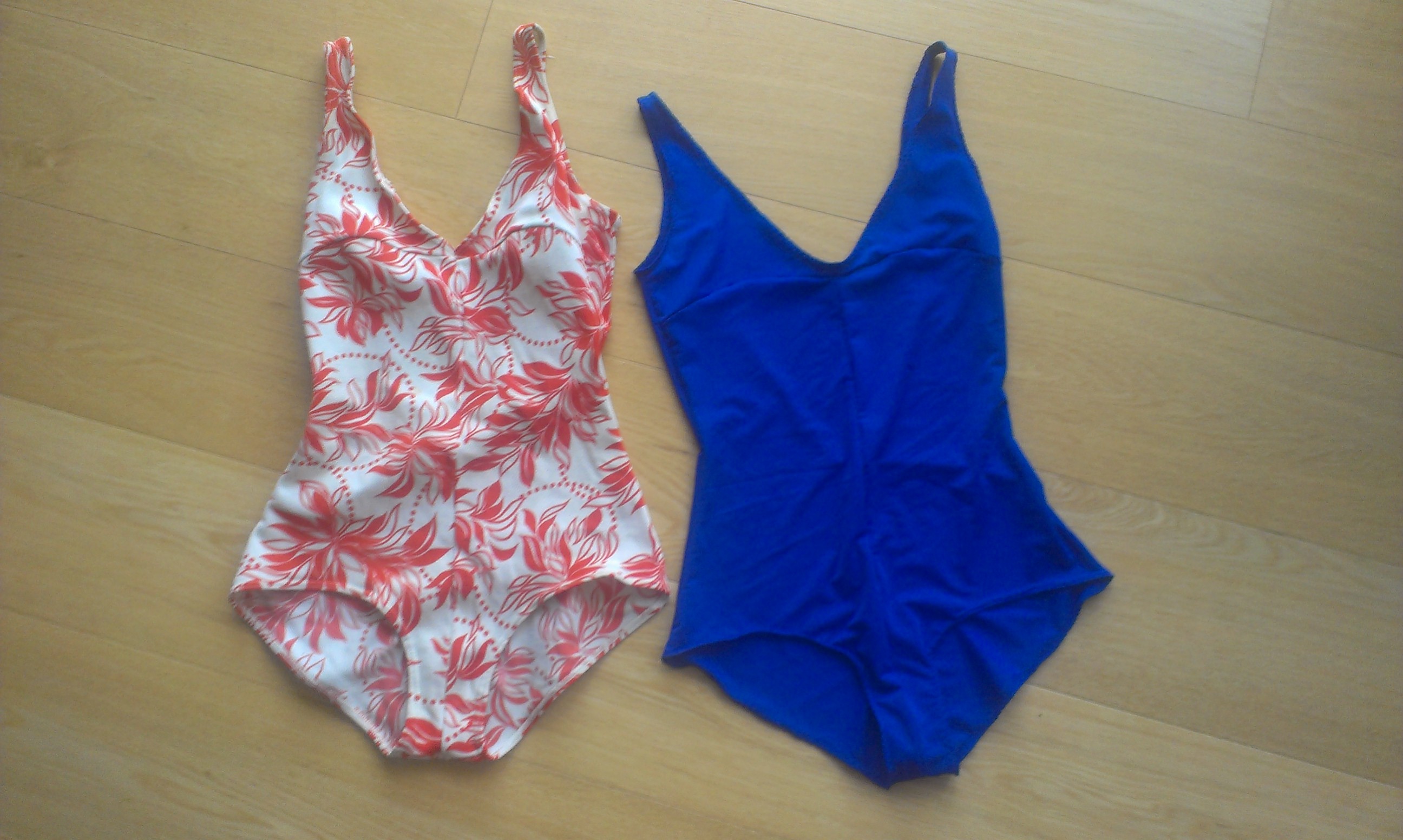 …og nu er de så moderne igen. Eller i hvert fald snittet, som jeg har brugt til at sy denne nye blå badedragt. Den gamle badedragt er lidt mør og mønsteret på stoffet er ikke så meget mig, men selve modellen passer både en ung udgave af min mor og jeg godt.