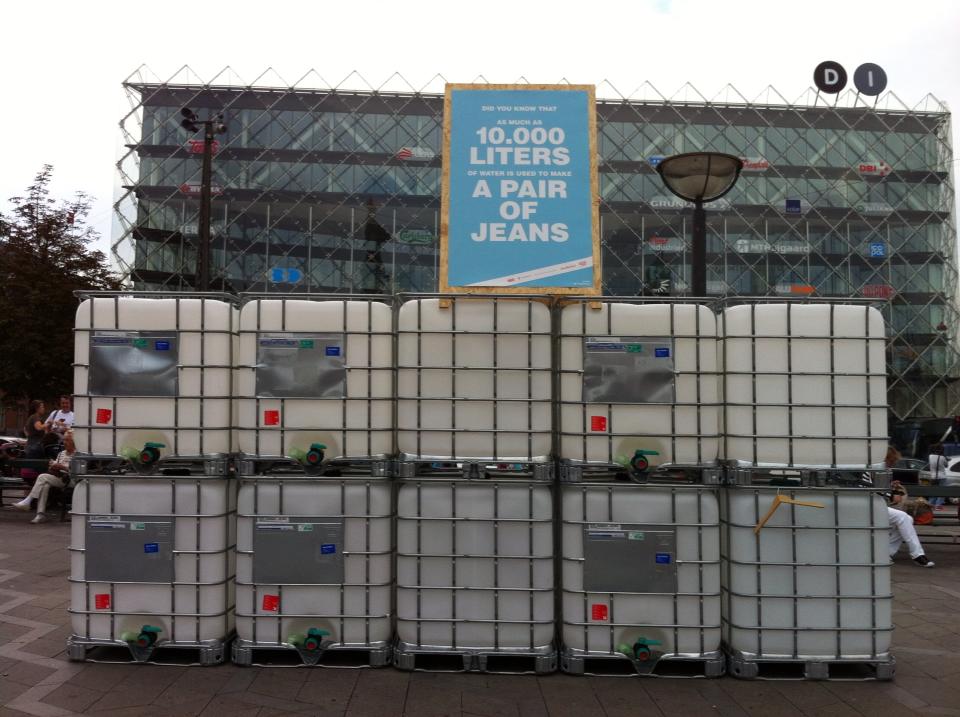 Her forbrug af vand ved fremstillingen af et enkelt par cowboybukser.