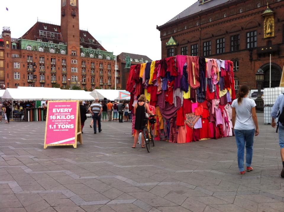 Ved indgangen til markedet var der opstillet flere udstillinger med fokus på den miljømæssige belastning, der forekommer ved produktionen af nyt tøj.