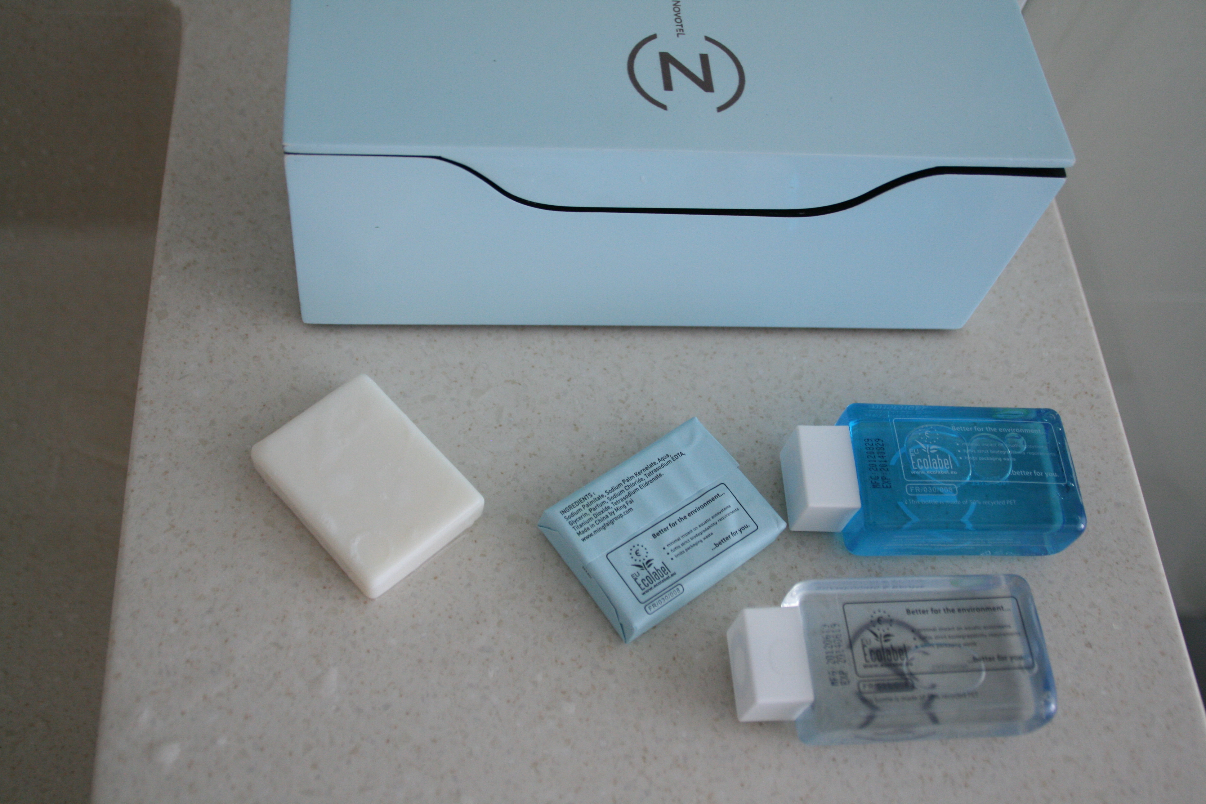 Et af de bedre hoteller vi boede på var Novotel, der foruden fin comfort kunne byde på miljømærkede plejeprodukter på badeværelset.