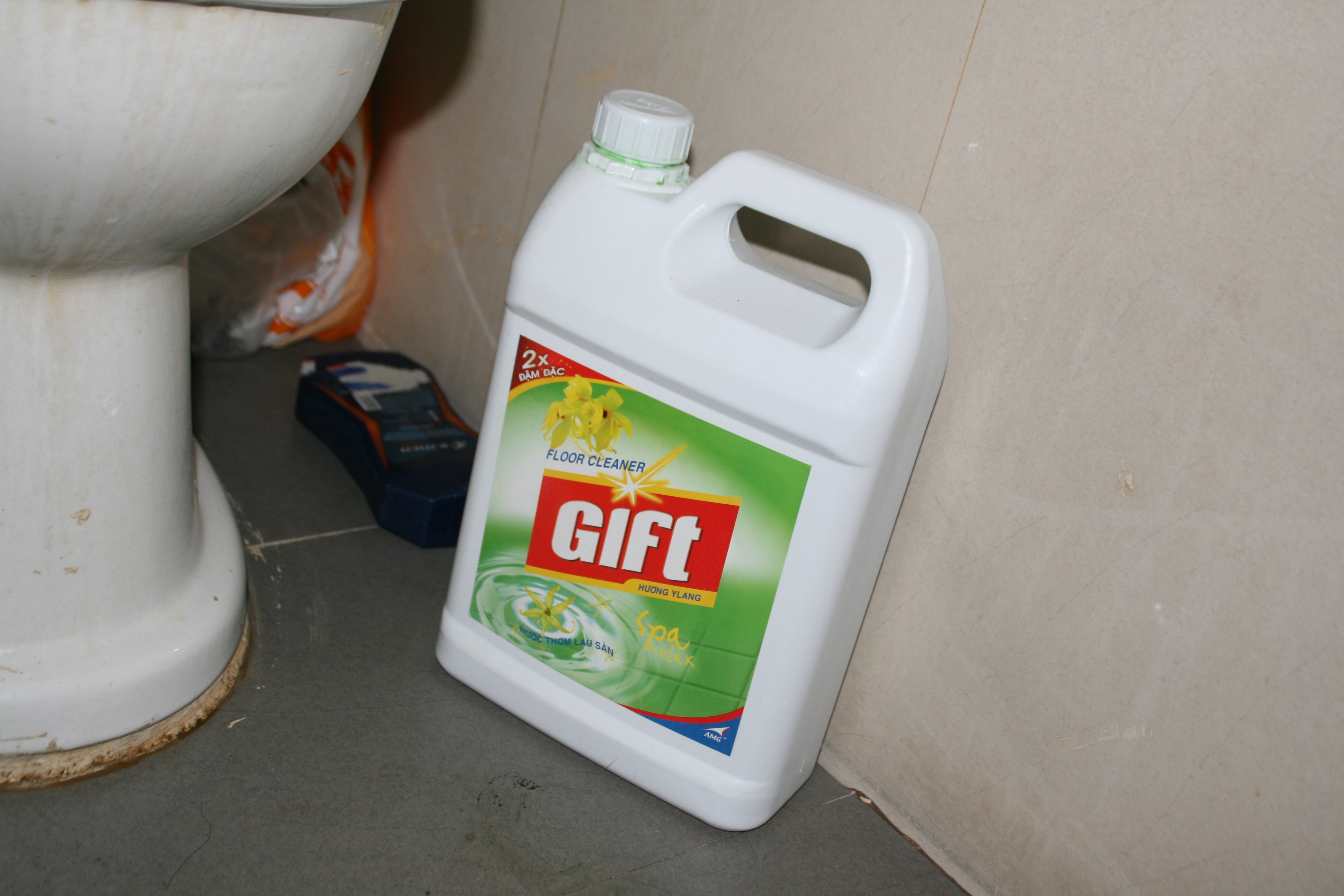 Her ser du rengøringsmidler fra et andet hotel.