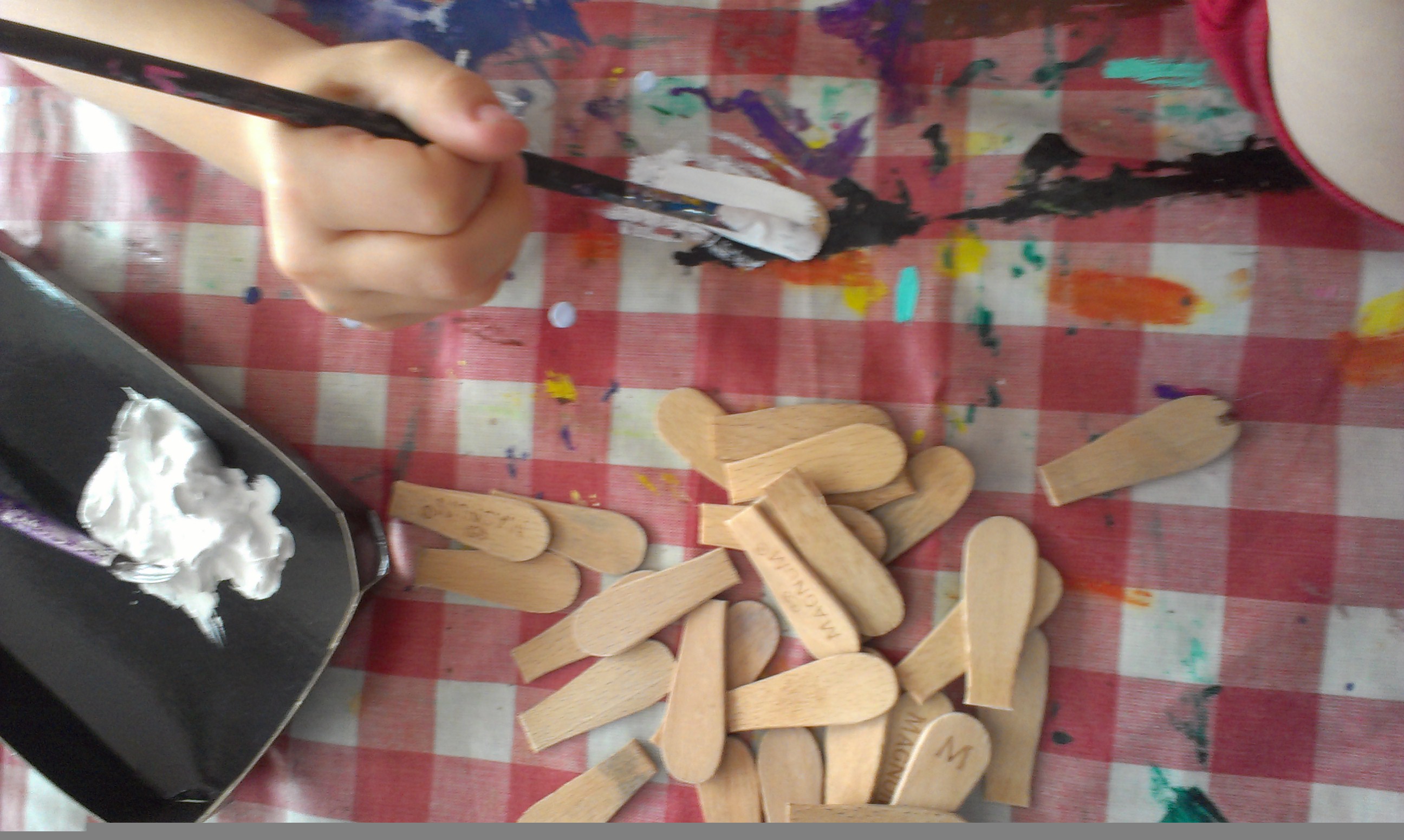 Stakittet er lavet af ispinde, der er malet og limet på med limpistol.