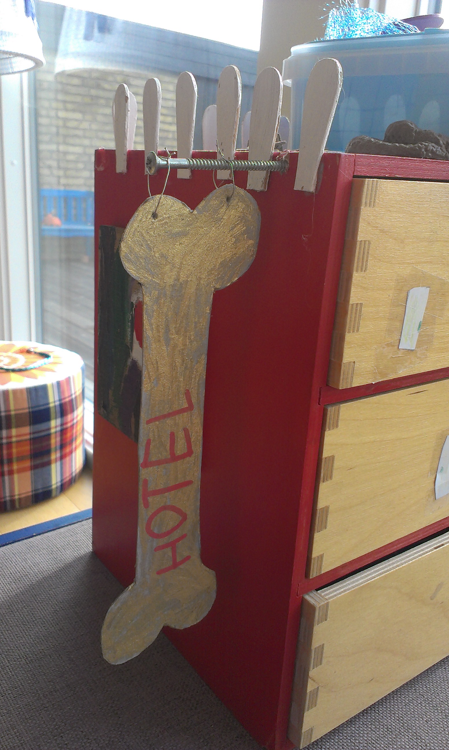 Der udvikles stadig løbende ting til hotellet og senest satte vi et skilt op og navngav hotellet: ‘Hotel det gyldne kødben’.
