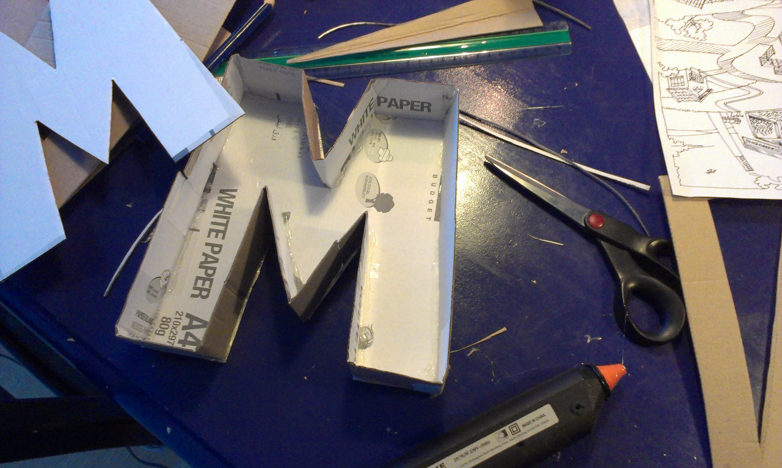 Til at samle bogstaverne har jeg brugt en limpistol. Først satte jeg det lange stykke på det ene bogstav og derefter blev den sidste del af bogstavet sat på.