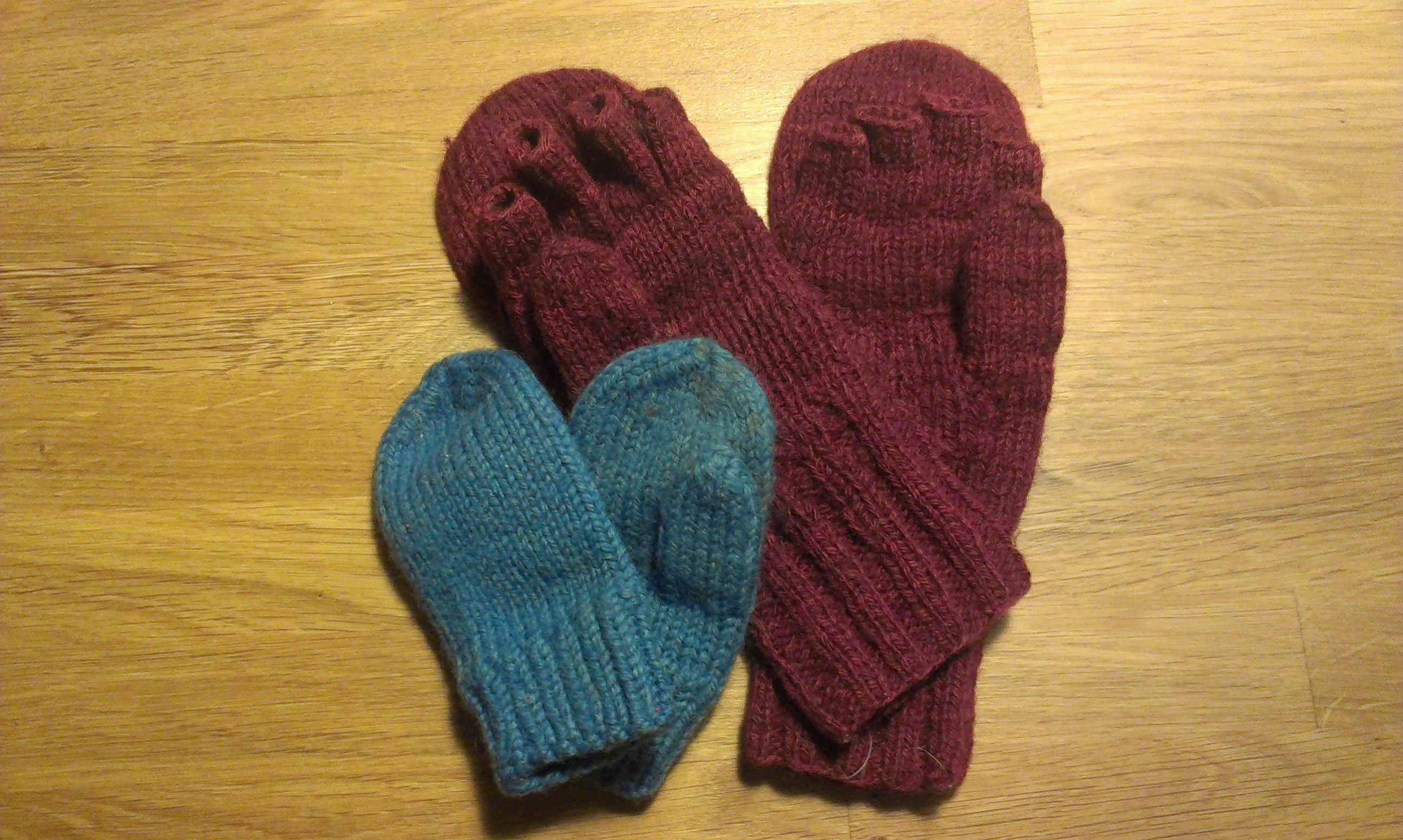 Vanterne er hjemmestrikkede og købt i en genbrugsbutik i Helsinki, som jeg besøgte for nogle uger siden. Jeg vil gerne blogge meget mere om min tur til Finland og de mange grønne initiativer som Helsinki har at byde på, men det må altså vente nogle uger endnu.