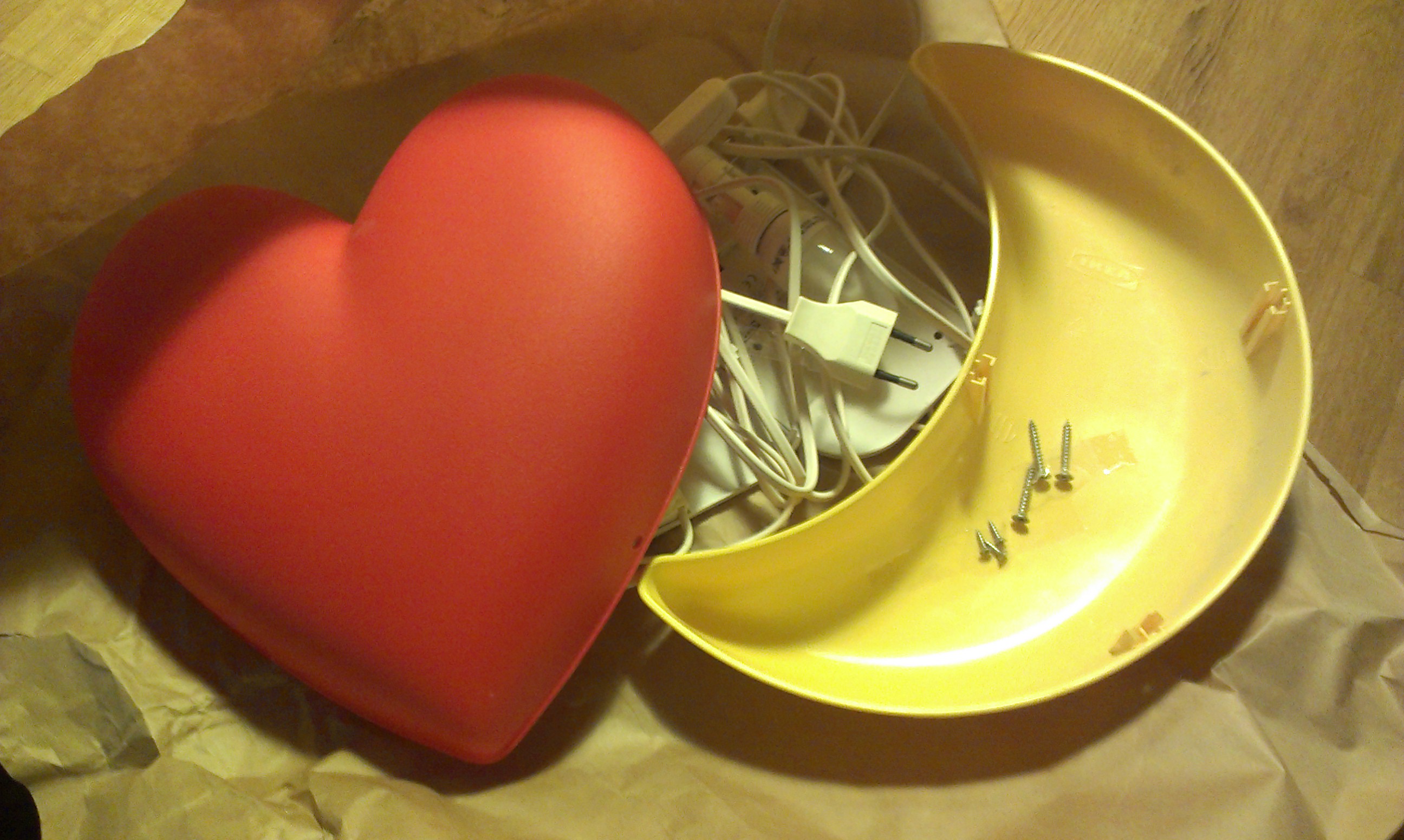 Lamperne er oprindeligt fra IKEA, men fundet i henholdsvis en af Mødrehjælpens genbrugsbutikker og i storskraldskrogen i ejendommen, hvor jeg tidligere boede. De har ligget i skabet i nogle år, men nu er det på tide, at de kommer op.