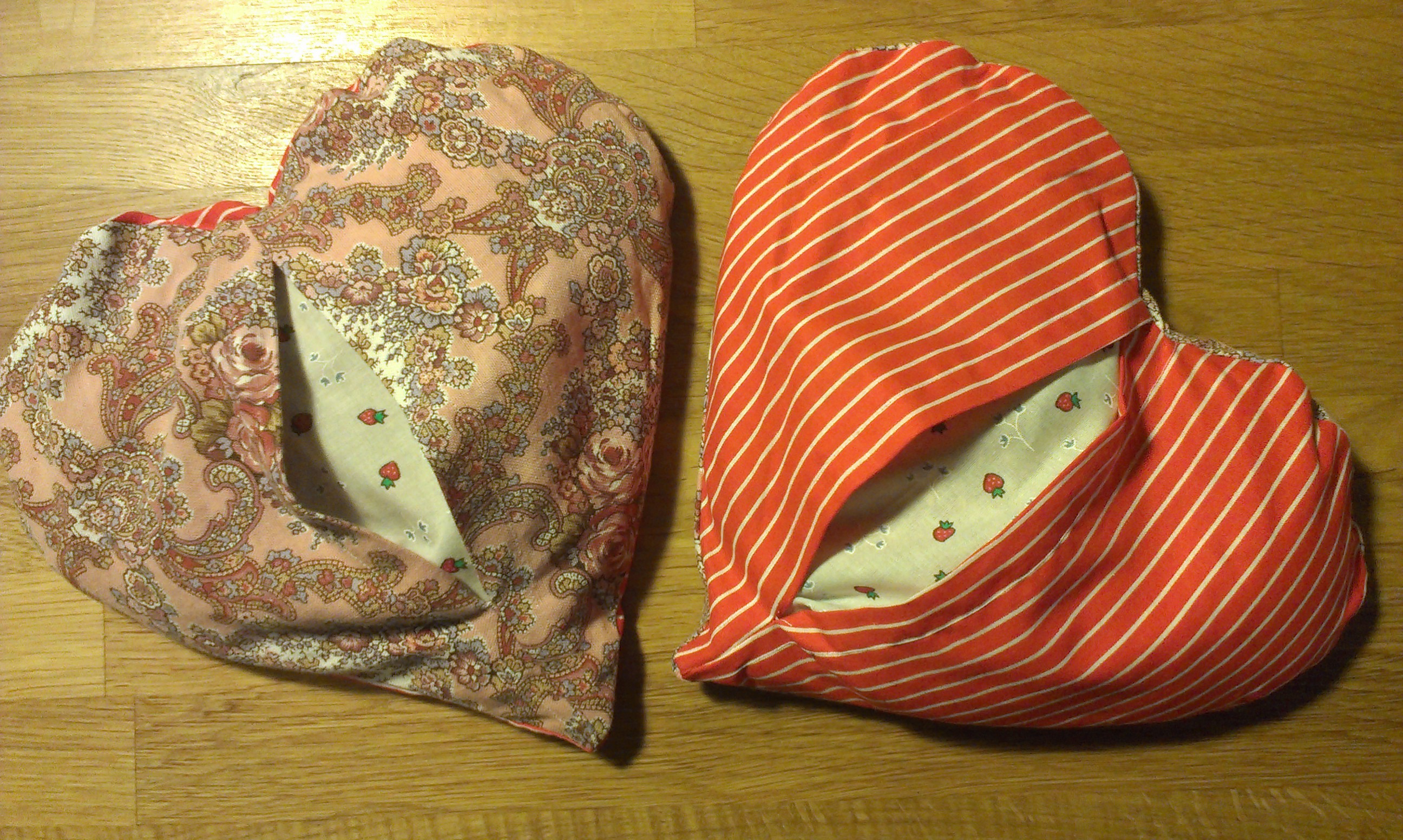 Der var to hjertepuder i nissegaven i dag. Ikke almindelige puder, men varmepuder med kornfyld til brug ved mavepine og måske vokseværk.