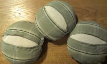 Endelig var der også en enkelt hjemmelavet gave. Tre varmepuder med kornfyld i betræk af brugt skjortstof.