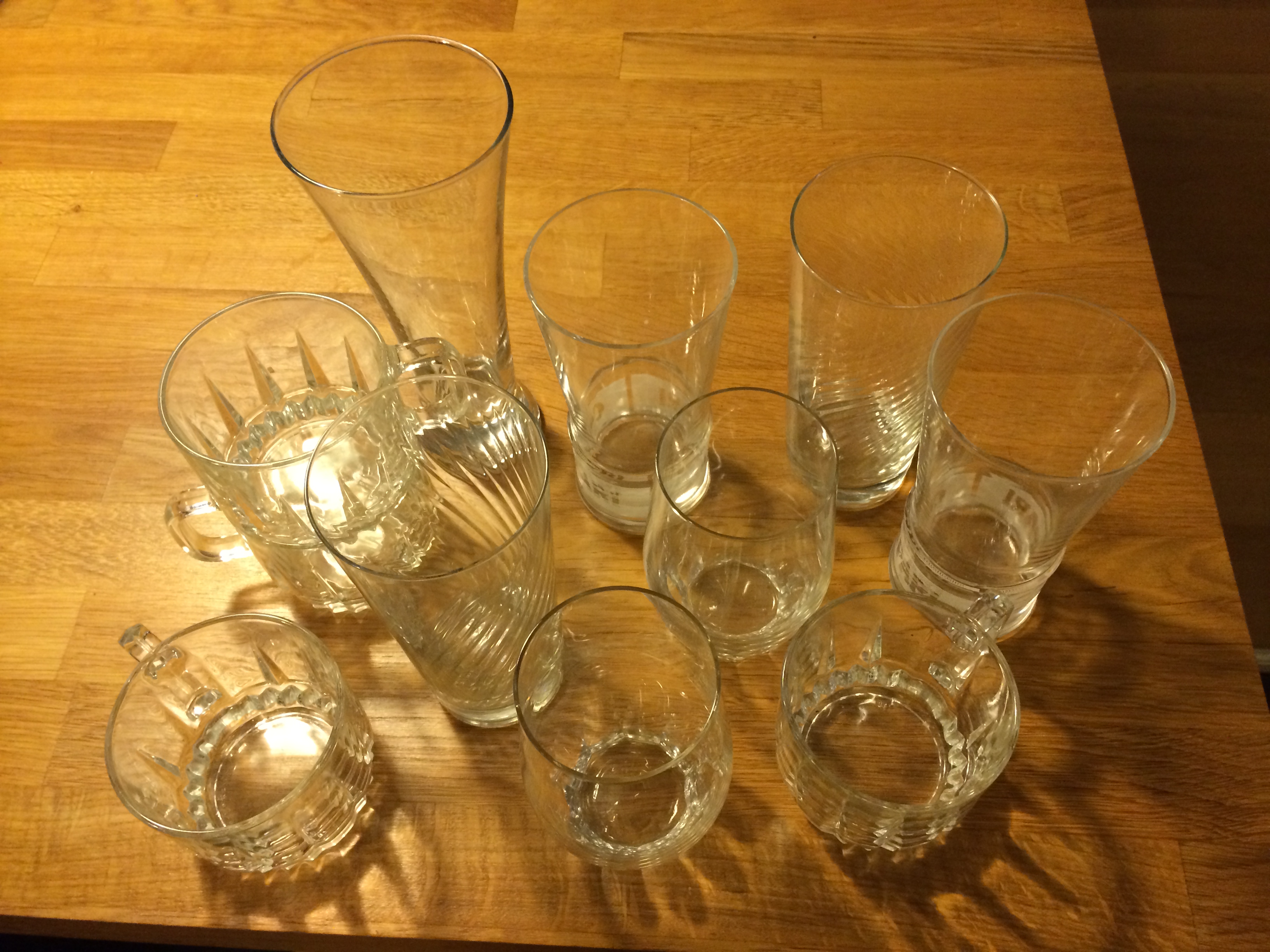 Så er der nye forsyninger af drikkeglas friske fra genbrugsforretningen.