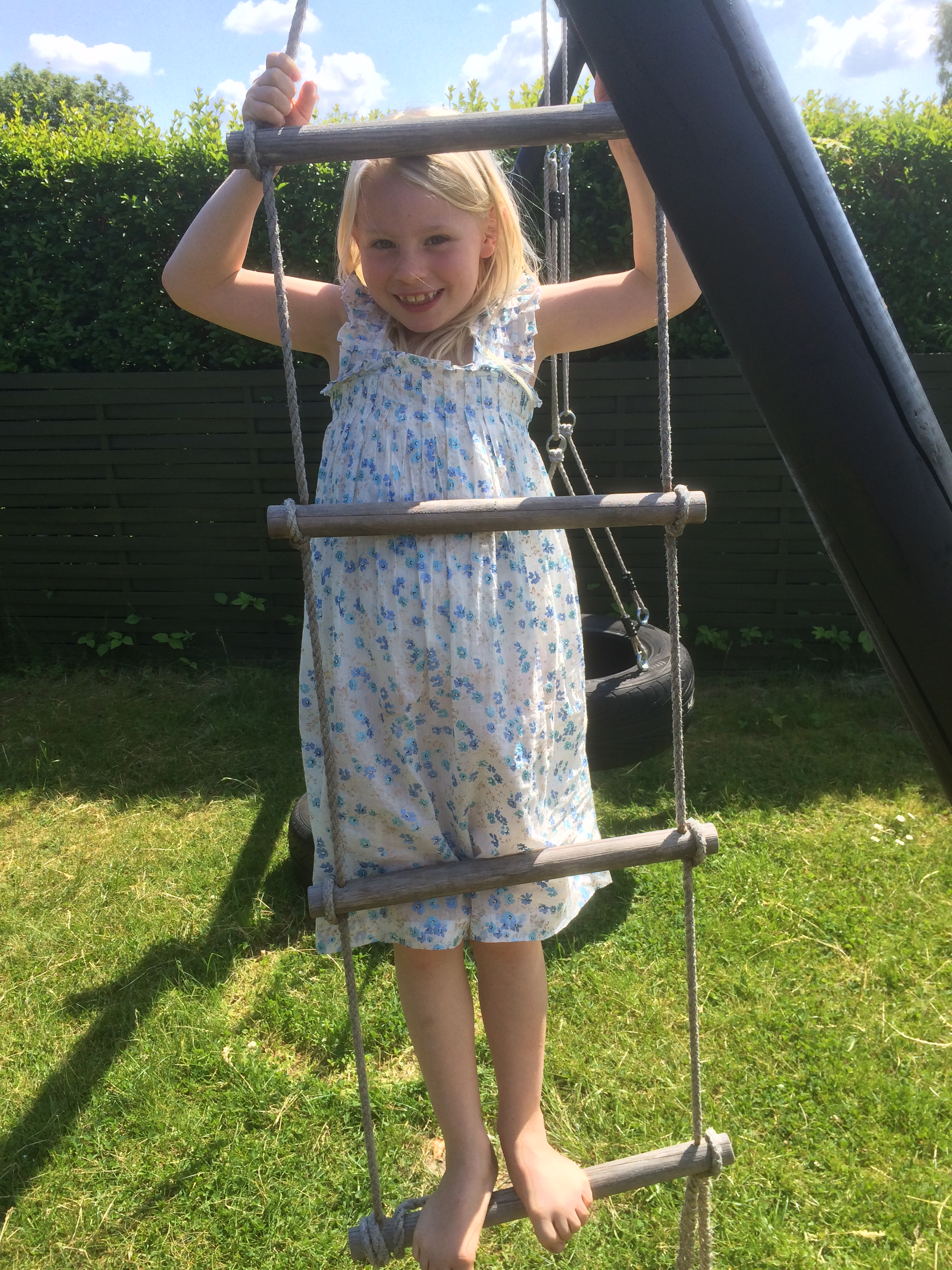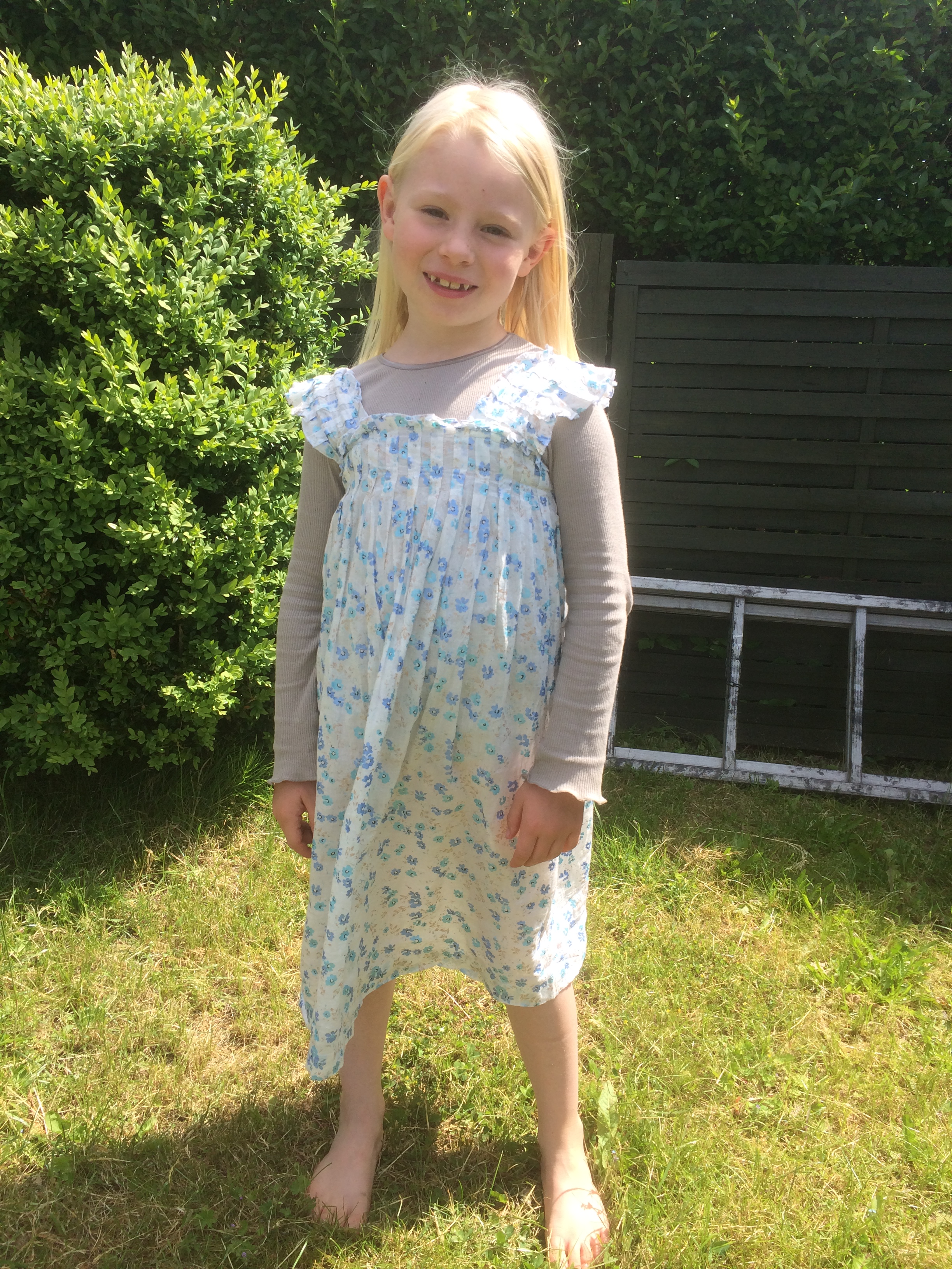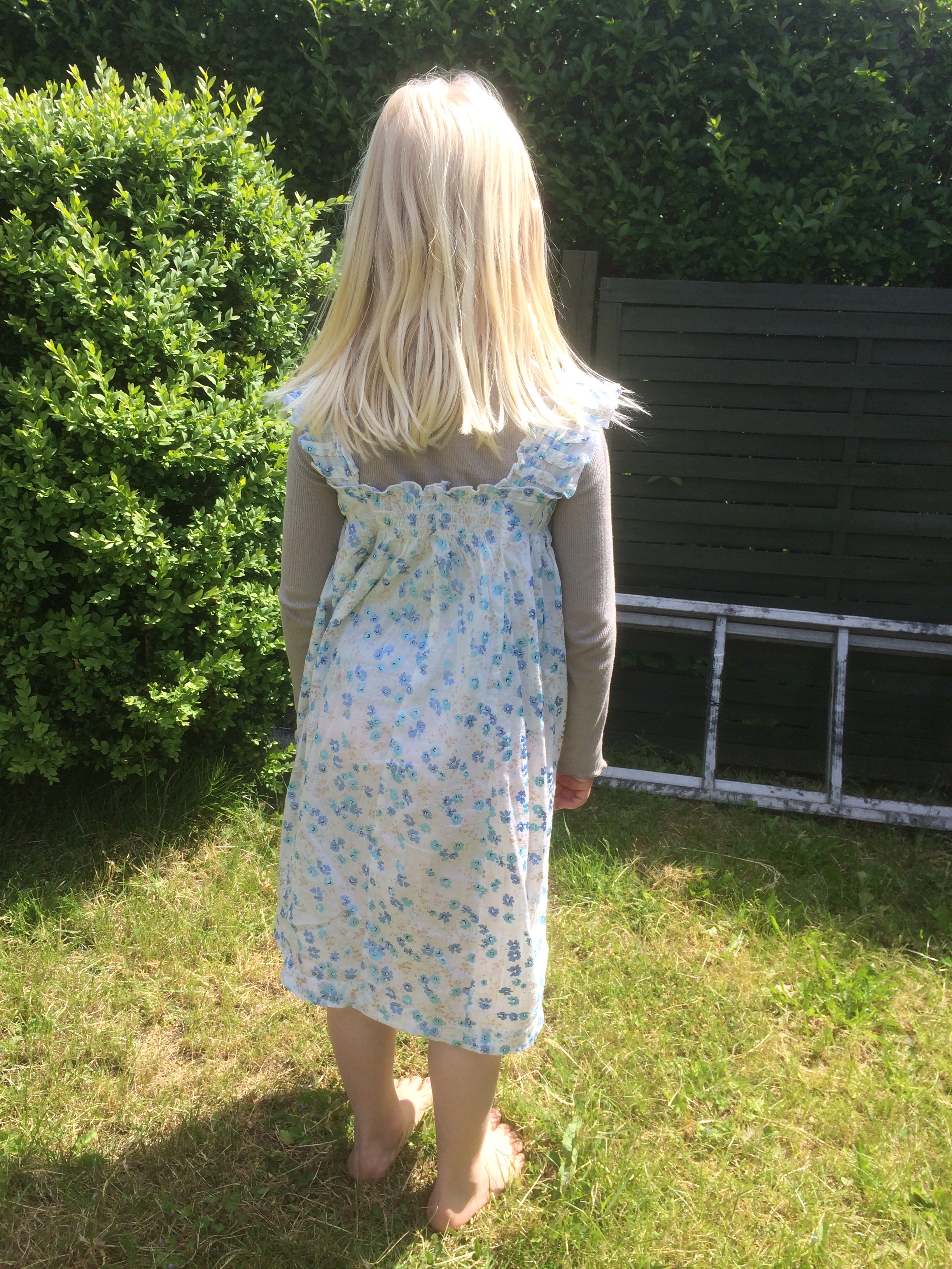 Til sidst er stropperne igen syet på, så de passer til min datters størrelse. Og den er blevet rigtig sød og sommerlig, så nu vil hun ikke gå med andet.