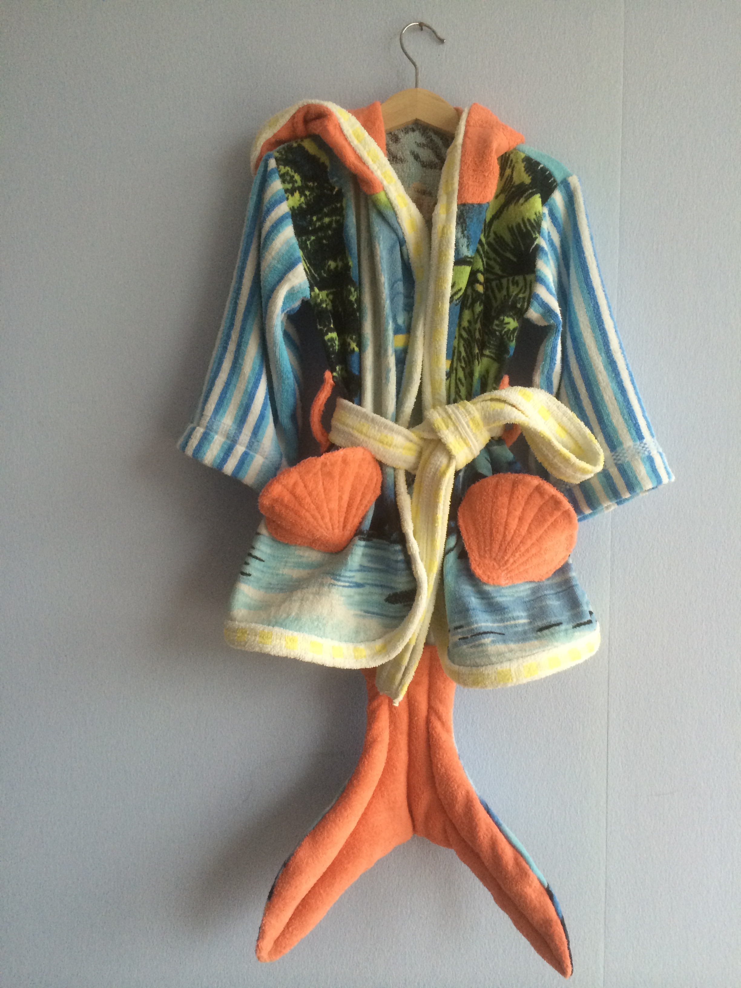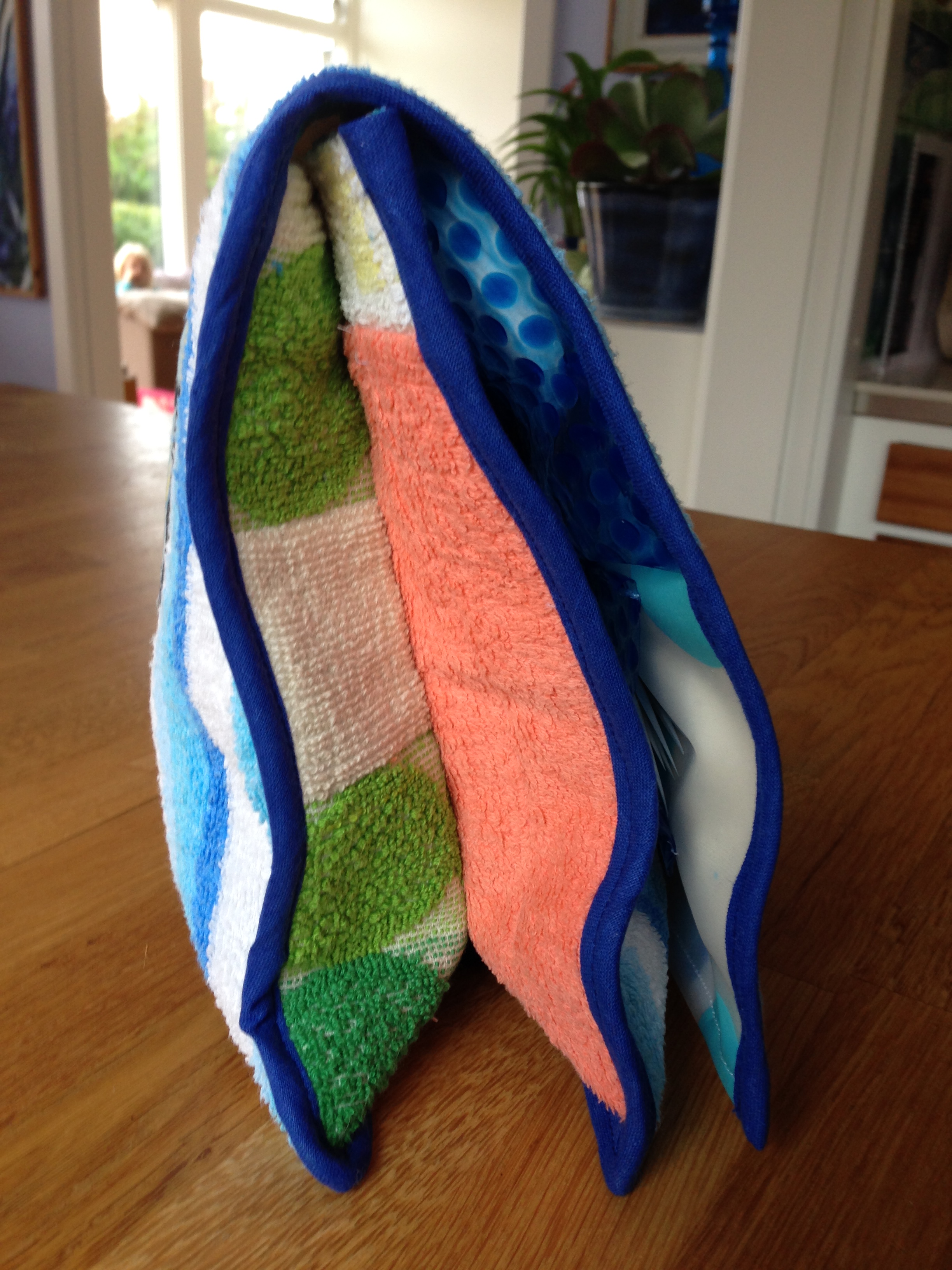 Måske kan du huske håndklædestoffet, der er brugt til tasken, fra den havfruemorgenkåbe, som jeg lavede til min datter?