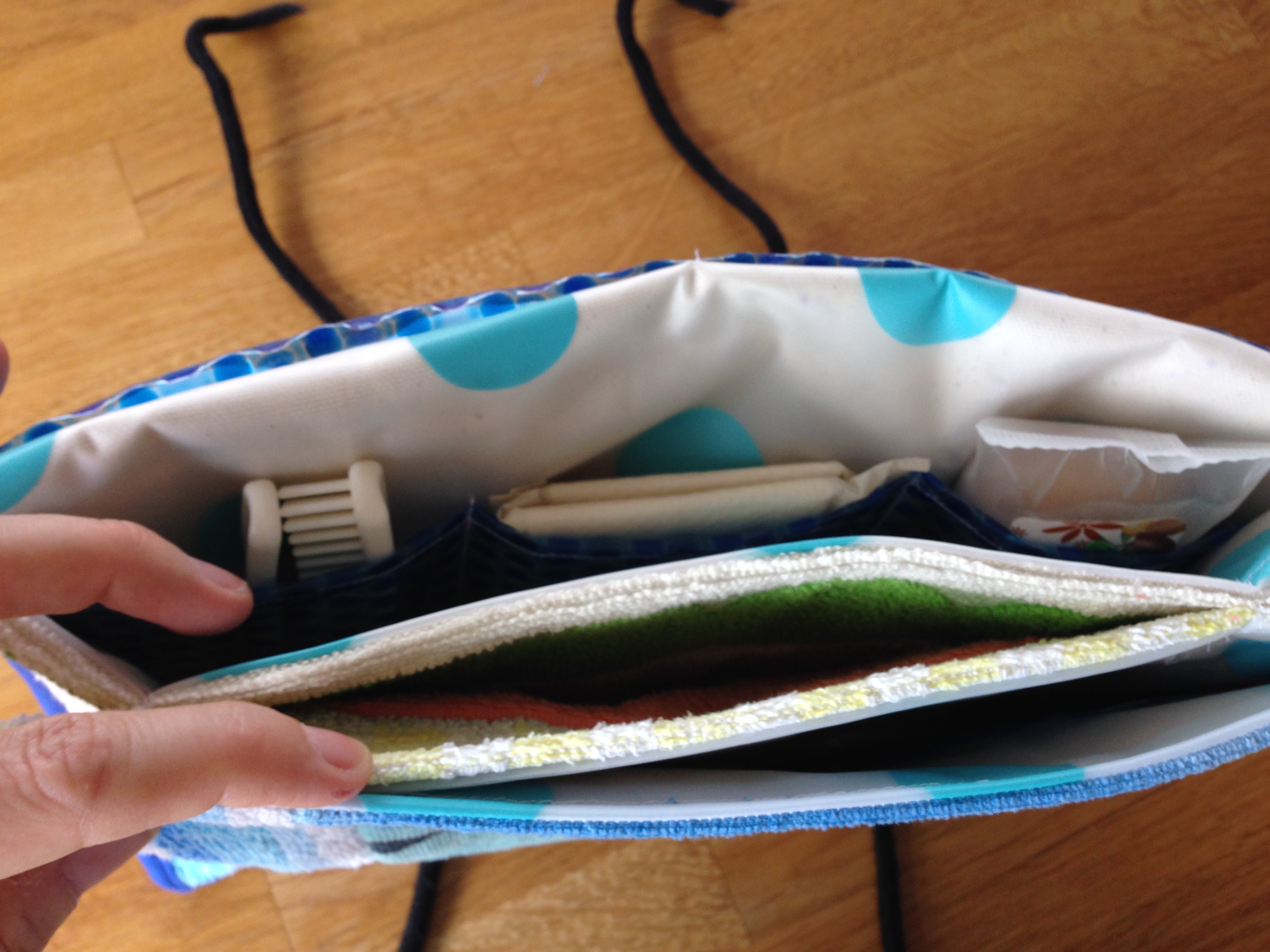 1. Hold da op, hvor er du dygtig. Det er så fint. Både badekåbe og toilettaske. Skriver du nogensinde “tutorials”? Altså på hvilket skridt i processen syr man de to lommer sammen til at danne en tredje?