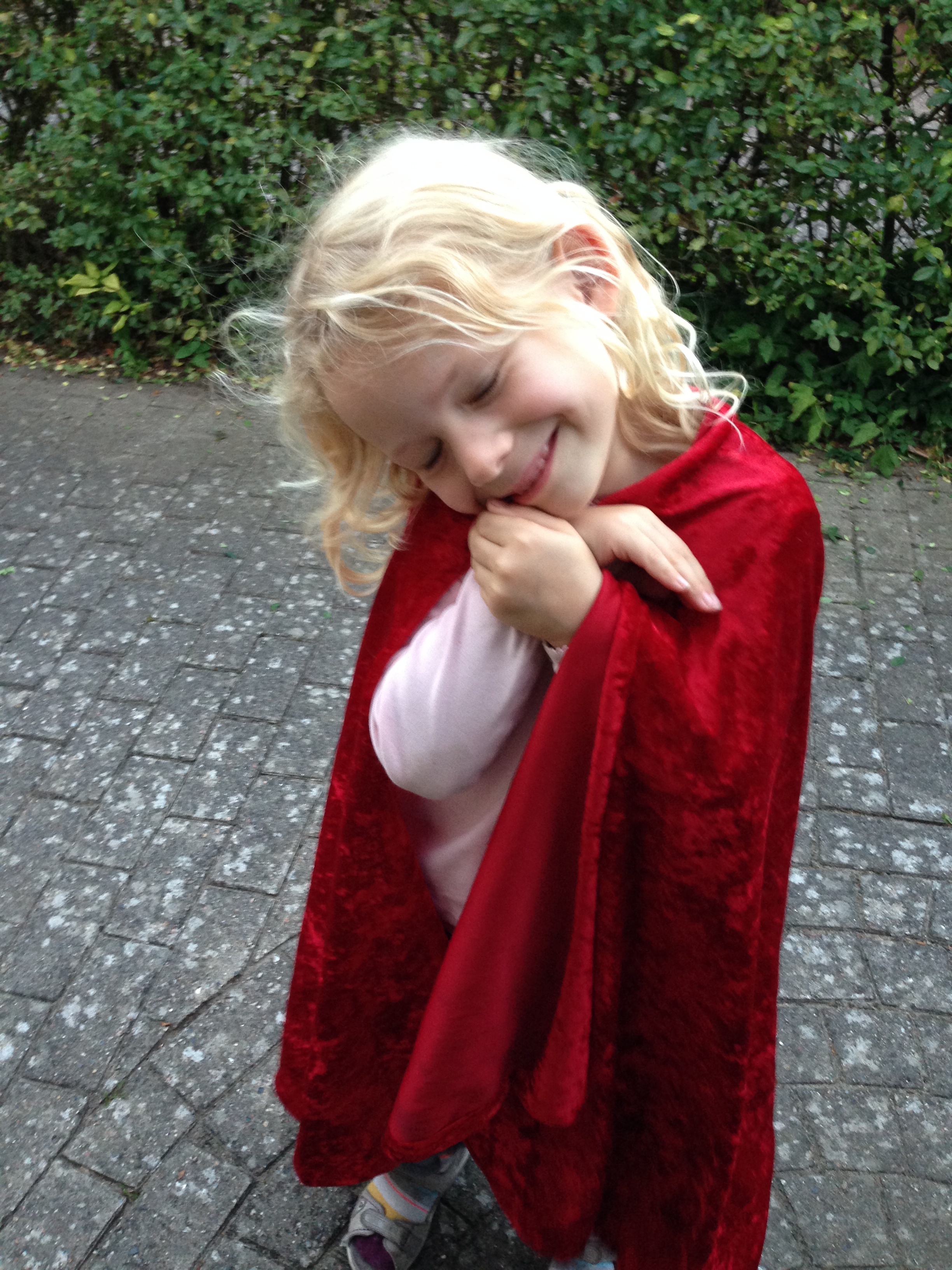 Min yngste datter har fået en ny dille. Hun er helt vild med at gå med kappe!