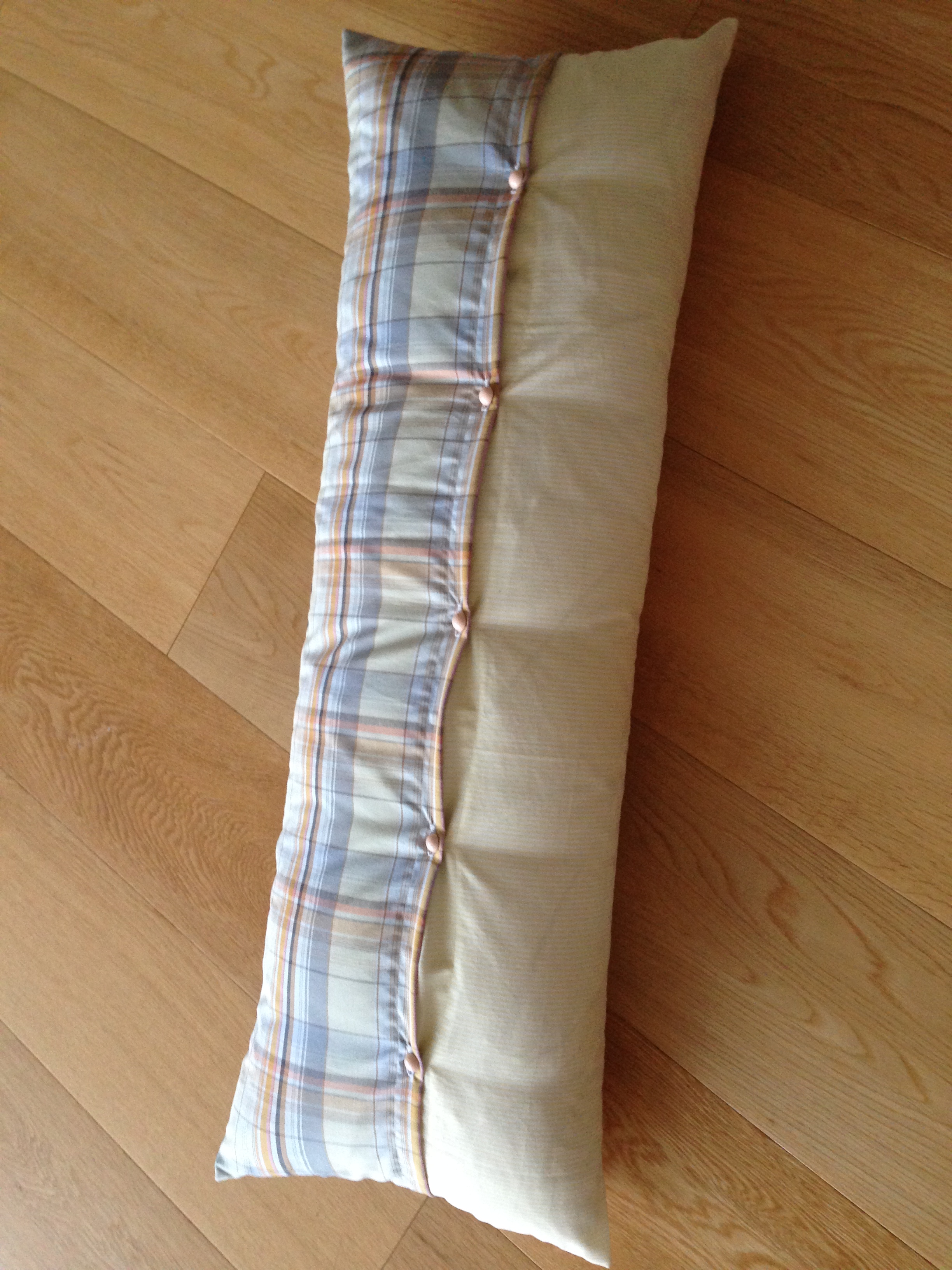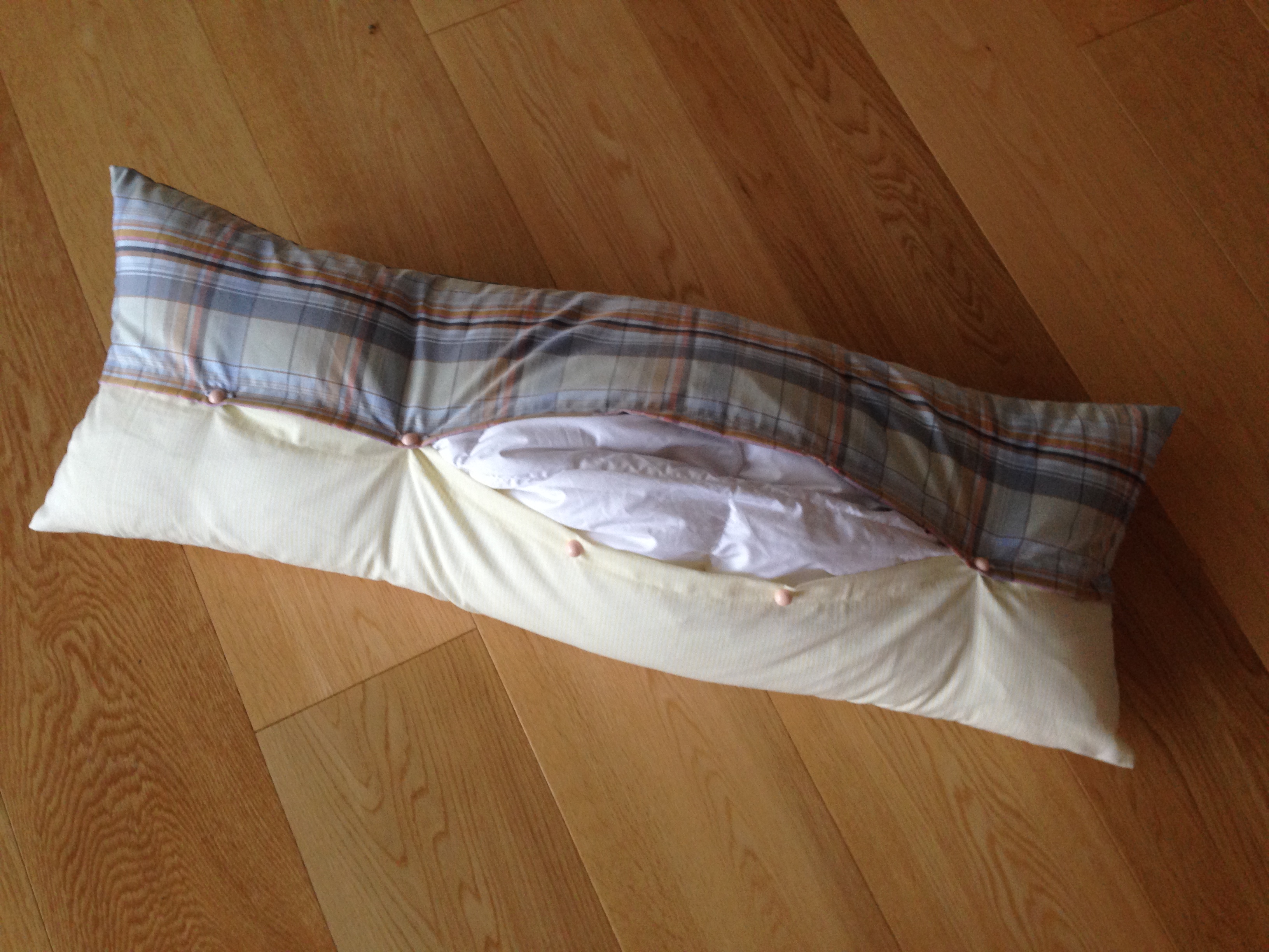 Eftersom de japanske stofstykker er aflange er puderne også blevet det, og jeg brugte lidt tid på at regne ud, hvordan dynerne bedst blev foldet, så de passede i betrækket. Man kan eventuelt overveje at give dynen et par systing, så den holder formen.