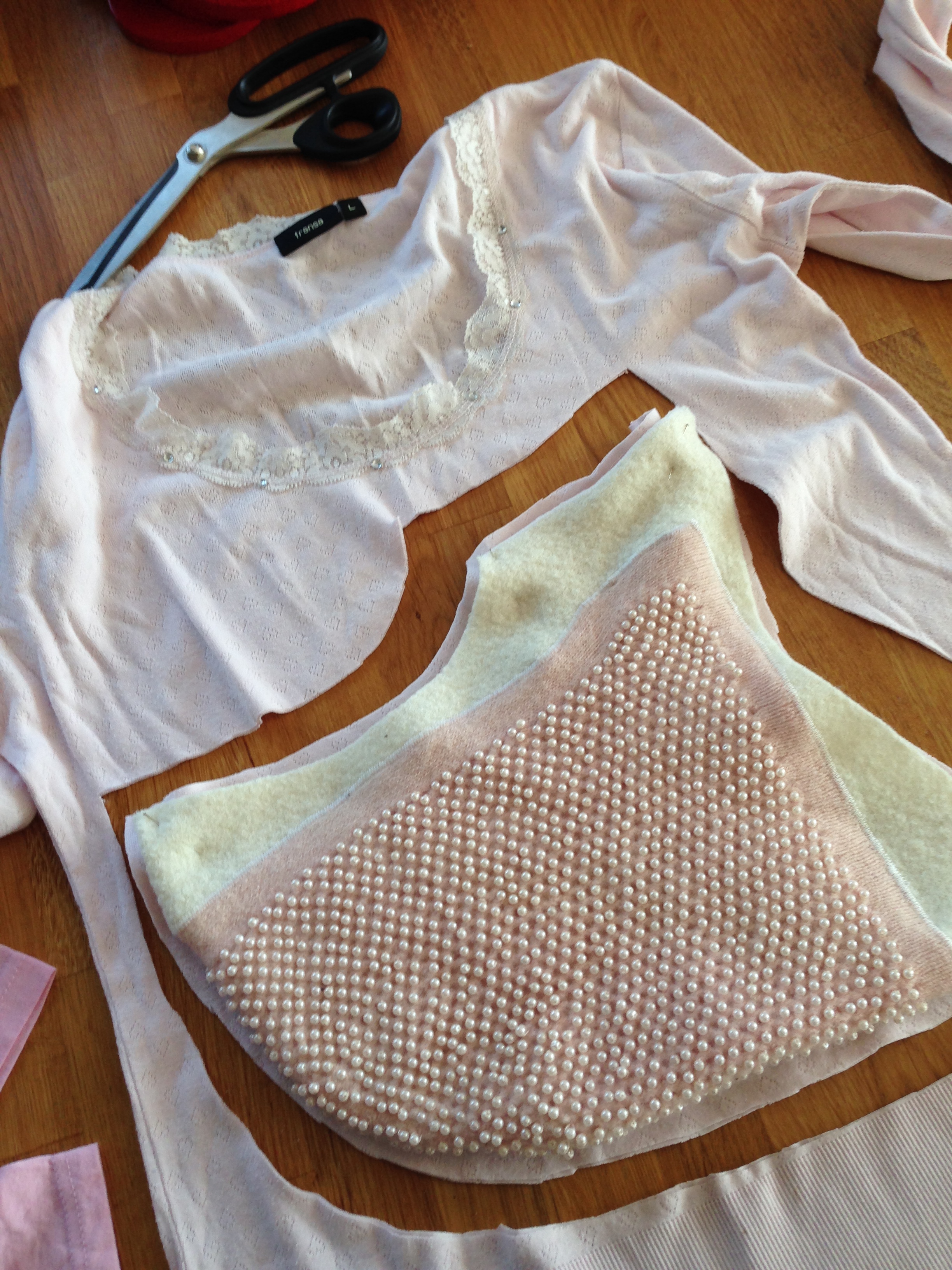 Efterfølgende er huen foret med stoffet fra en plettet bomuldsbluse, så den ikke kradser, og har fået sat en kvast af kaninpels på.