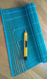 Ispindene er gjort våde, så de ikke flækker, og der er lavet hul i midten med en bæltehuller. De er efterfølgende sat på en pind fra et rullegardin som er sat ned i en champagne korkprop. Pindene kan drejes i forhold til hinanden, så de danner en spiral.