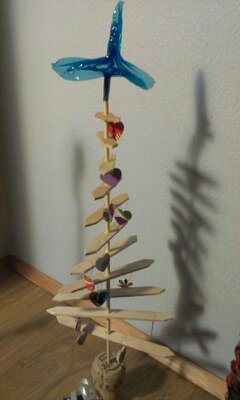 Dette lille juletræ er også fra sidste år og er af ispinde.