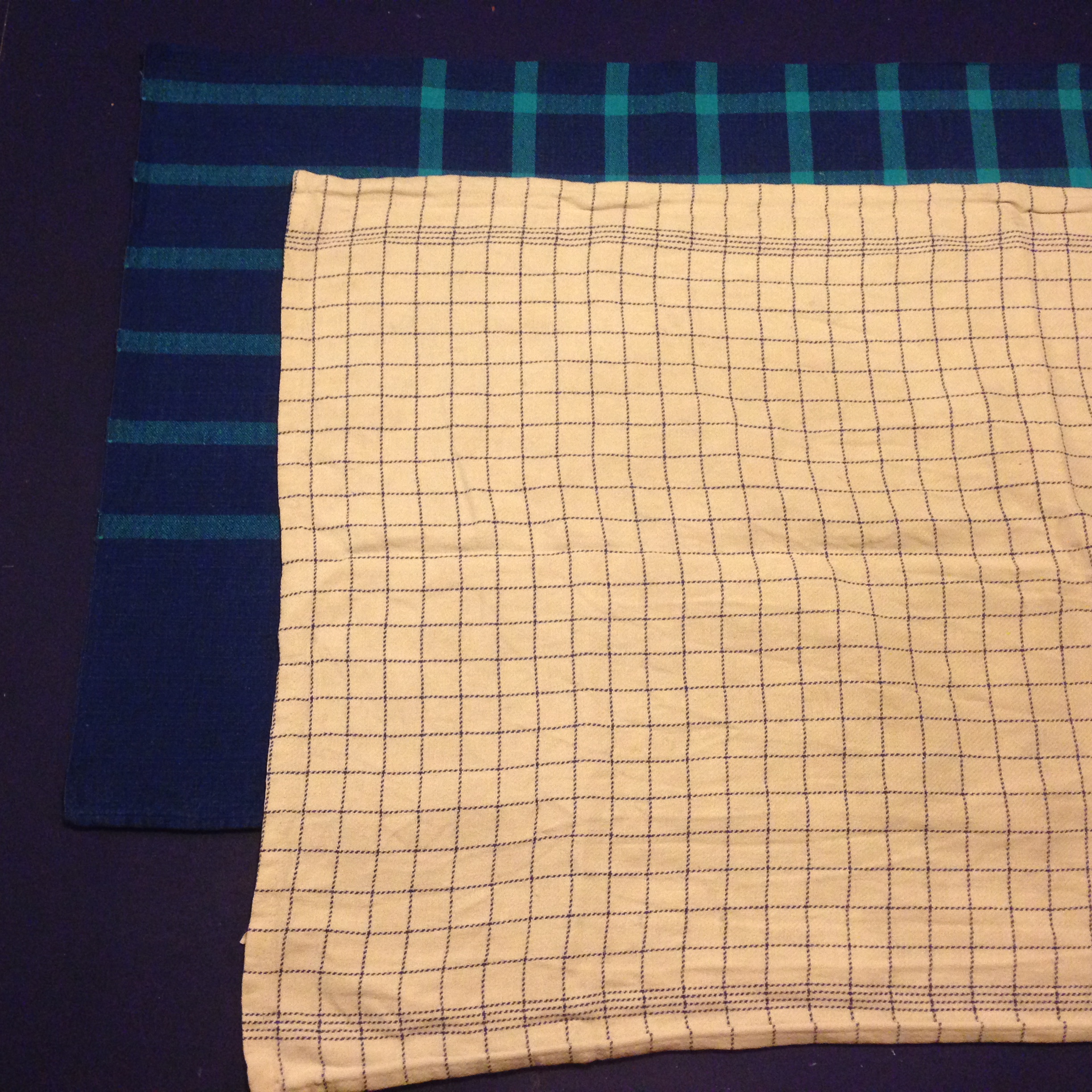Selvom viskestykkerne stadig kan bruges, så trængte jeg altså til nogle friske. Og for at få kvalitet og flot stof har jeg brugt disse to ternede duge til nye viskestykker.