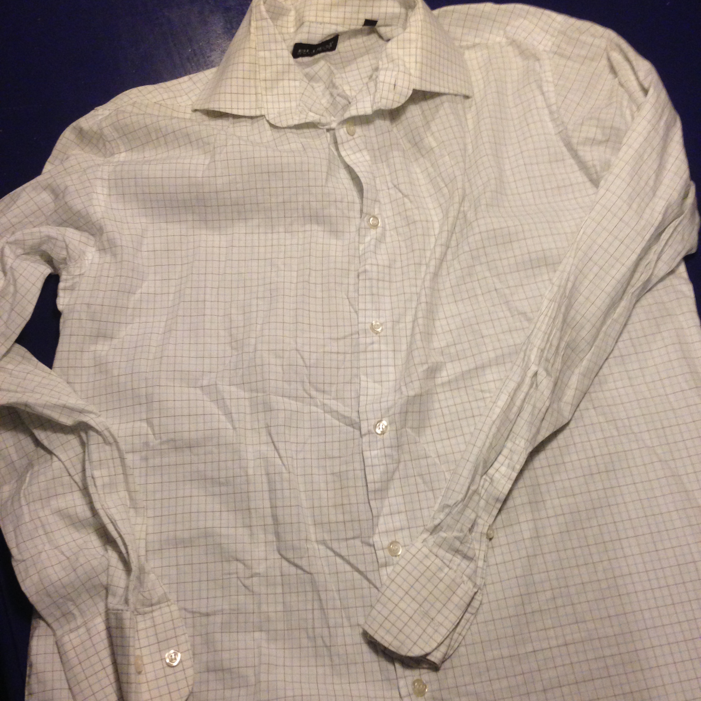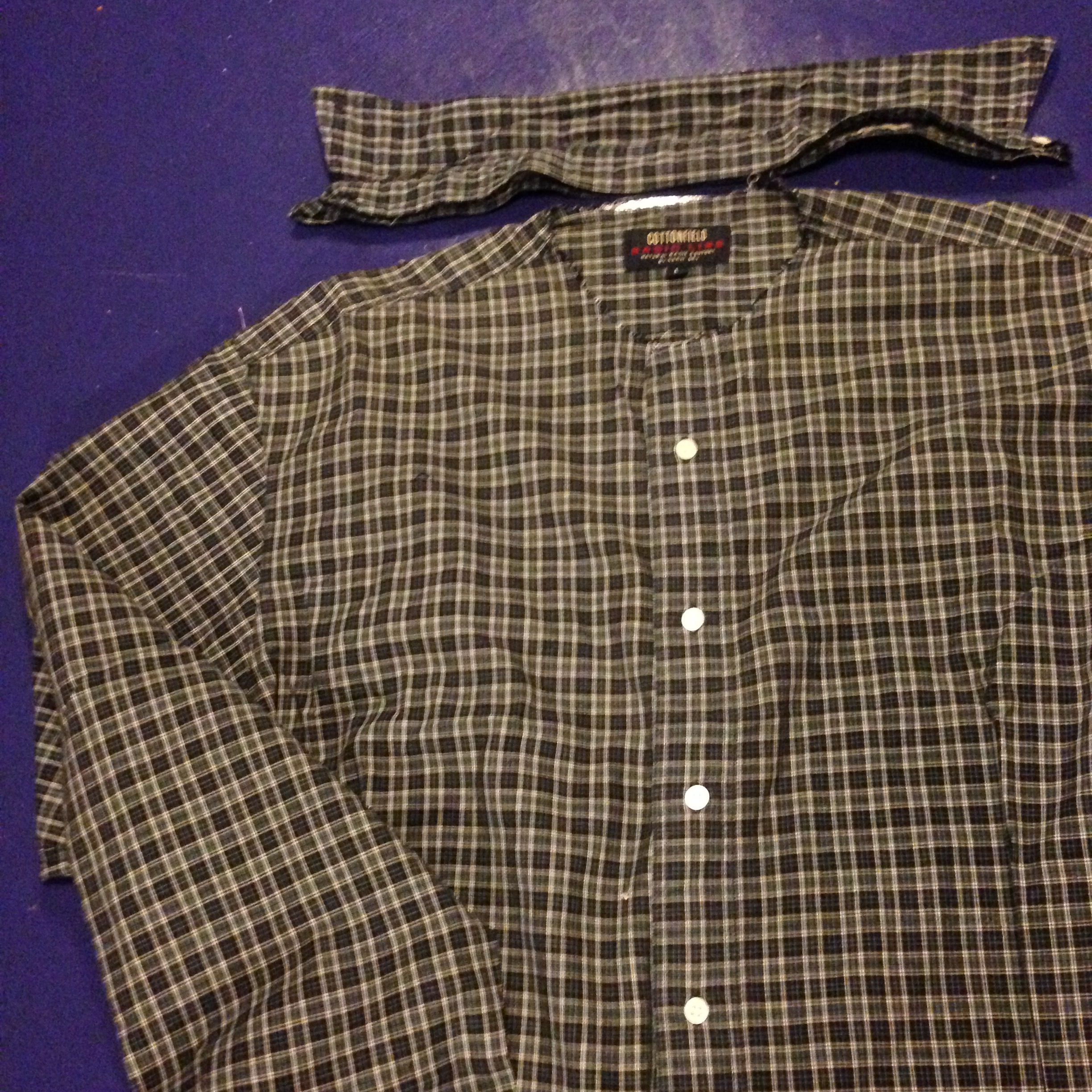 Jeg har samlet en hel bunke af skjorter, som enten er blevet kasseret pga. slitage eller pletter, og herfra er valgt en mørk og en lys skjorte til formålet.