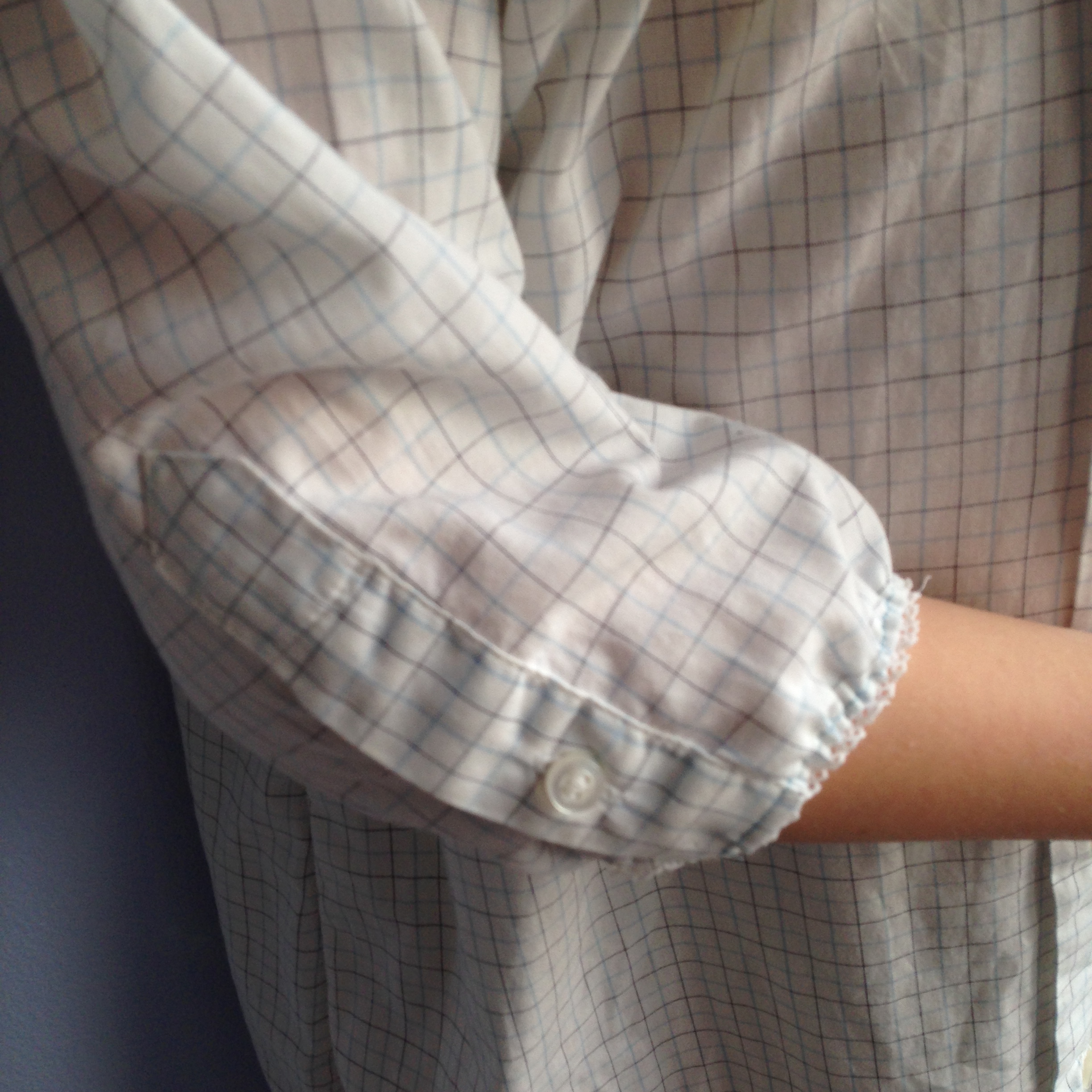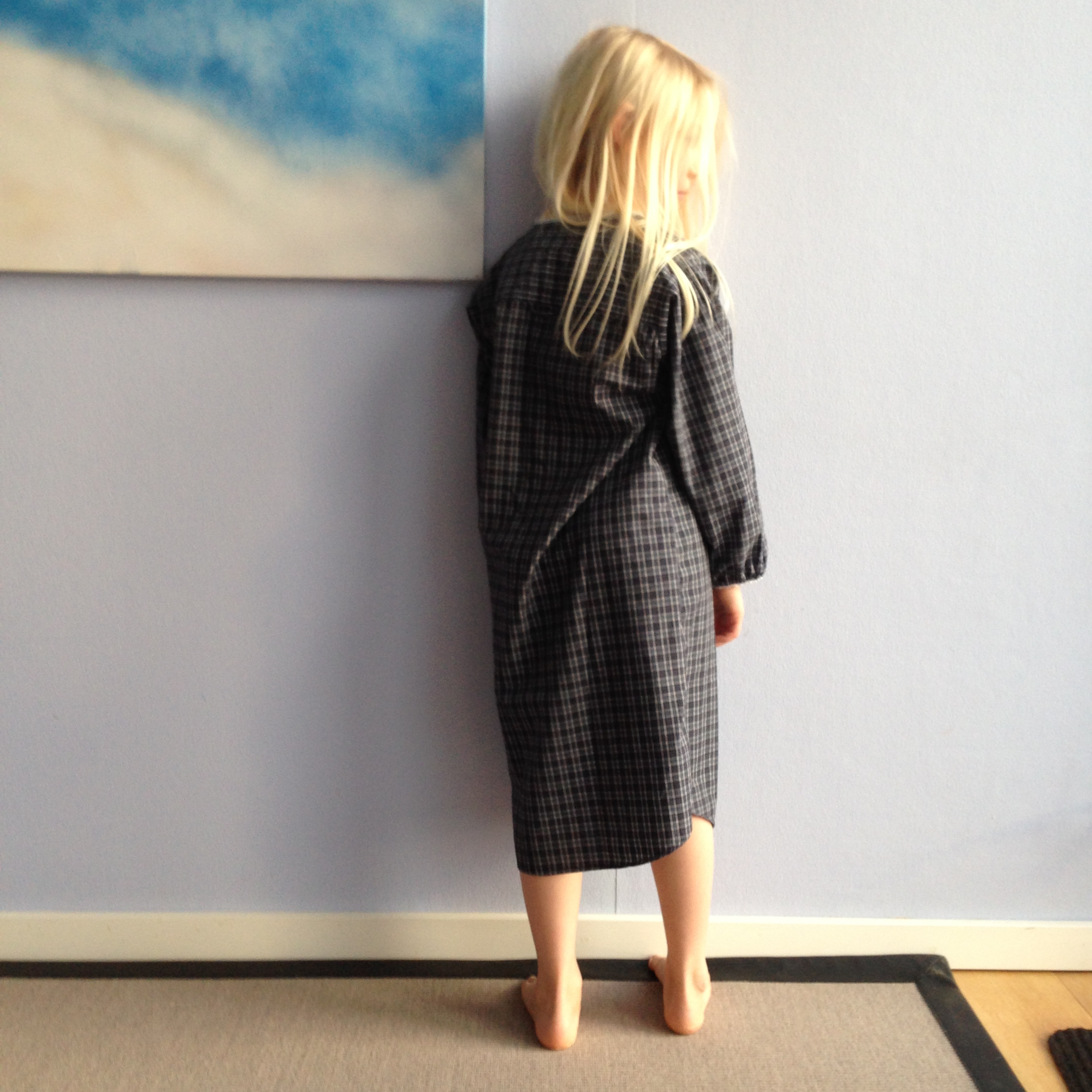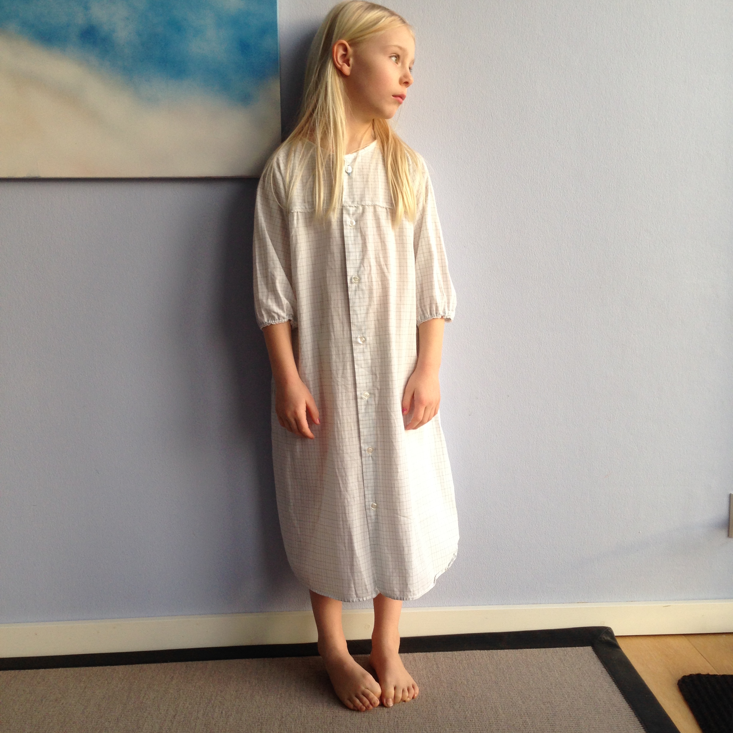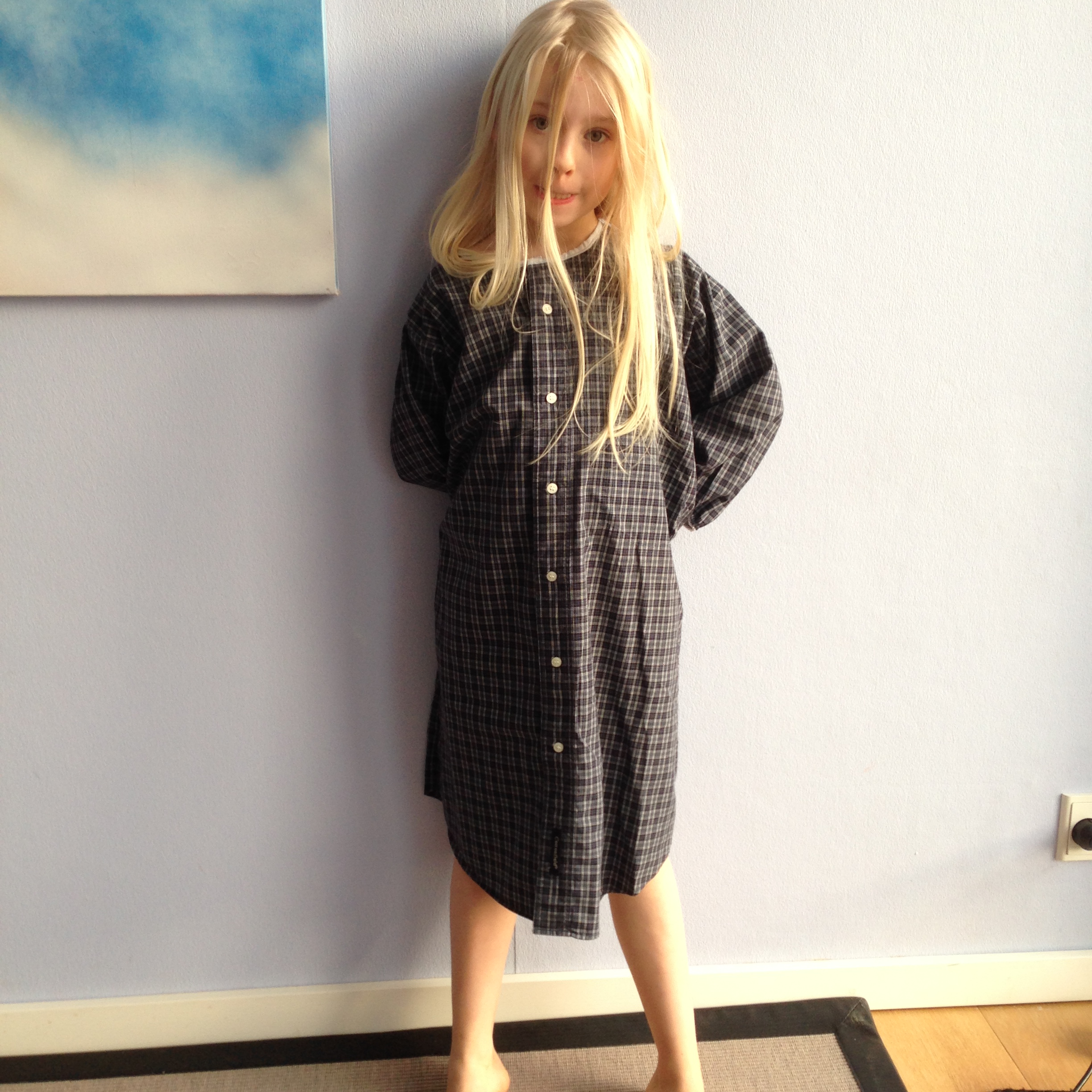 Min ældste datter er vokset ud af sine favorit natkjoler, som er sådan nogle lidt skjorteagtige natkjoler. Det var derfor nærliggende, og faktisk også nemt, at sy hende et par nye ud af hendes fars aflagte skjorter.