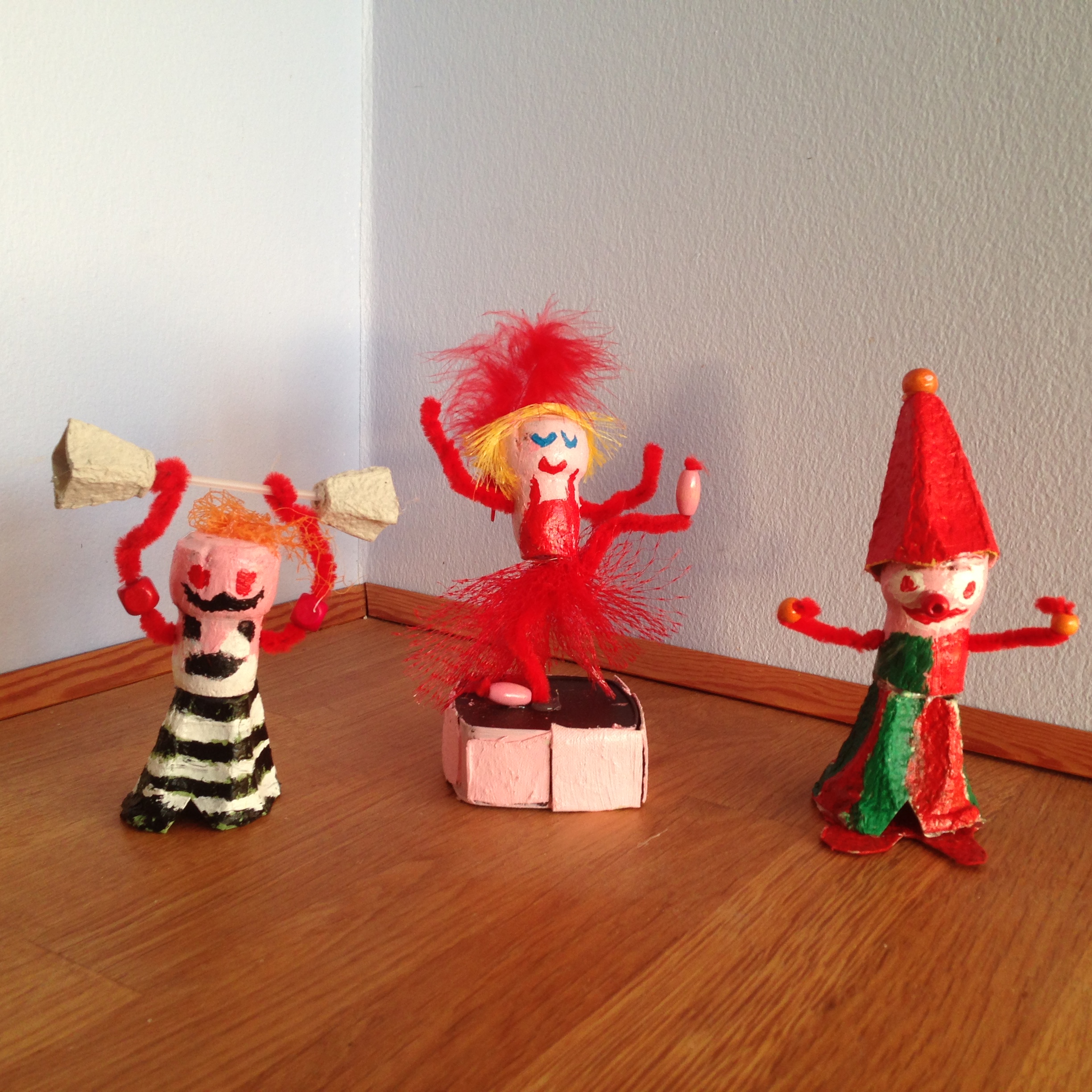 Min datter på 8 år er efterhånden en habil skraldebygger. Se her hendes seneste kreationer skabt af æggebakker, korkpropper, frugtnet og piberensere.
