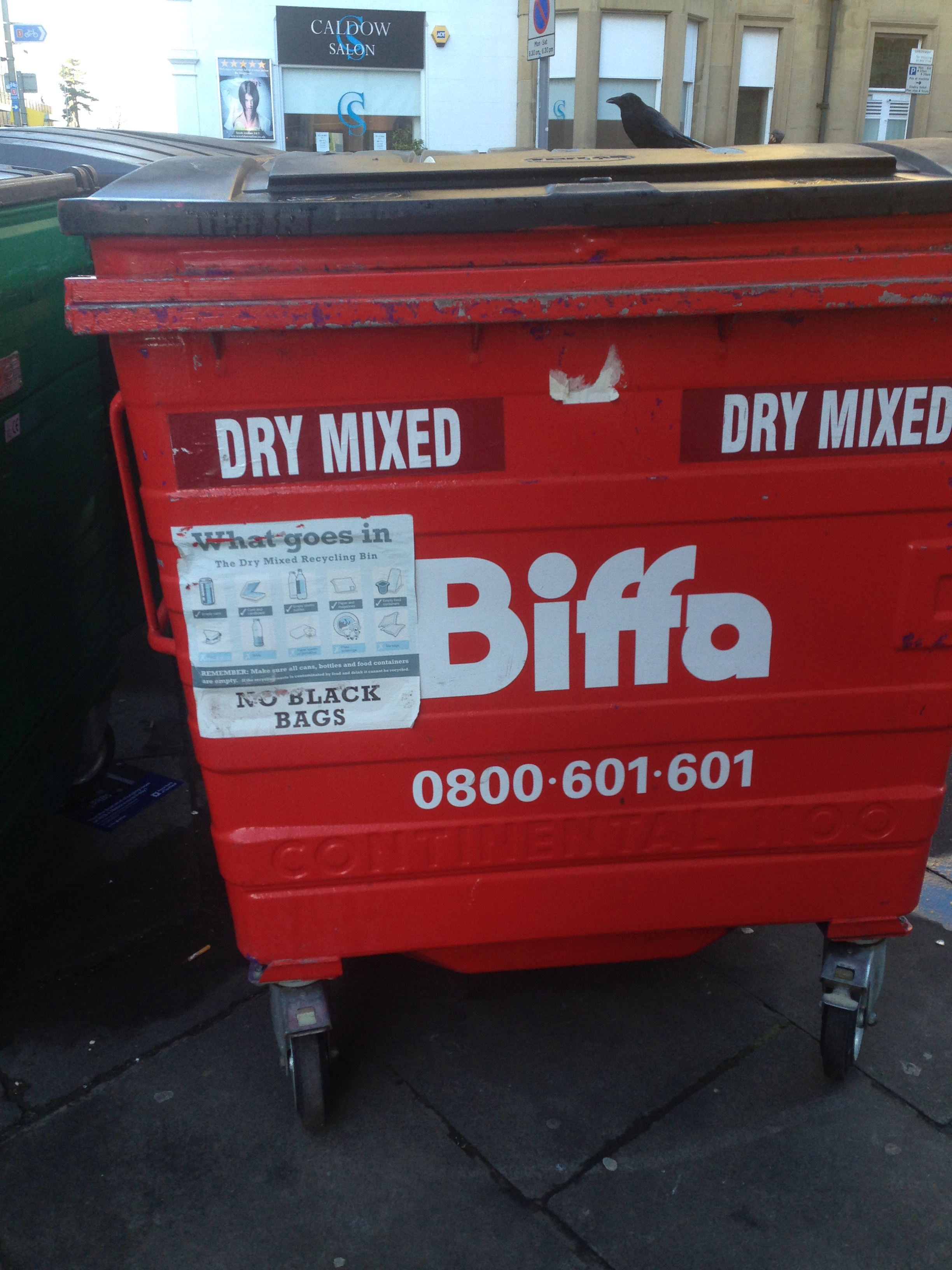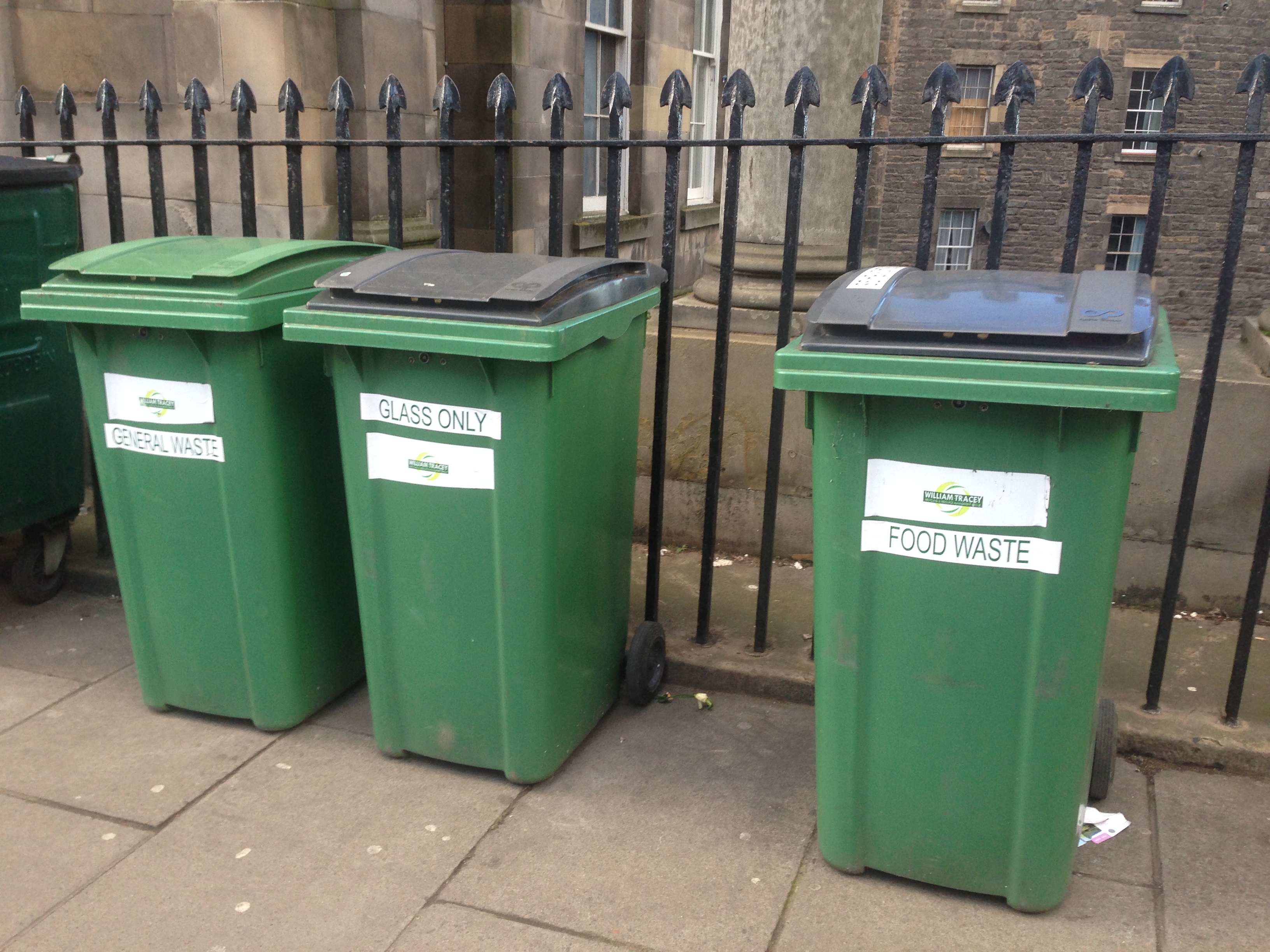 Hvis du sidder tilbage med det brændende spørgsmål på læberne – mon de nu også affaldssorterer i Skotland?, så er svaret ja! Affaldsbeholderne er placeret på fortovet i Edinburgh og ligner noget der er løgn i gaderne, blandt andet fordi de har forskellige farver, men der er containere til de såkaldte tørre fraktioner: plastik, pap, papir og metal i en beholder og en til glas. Her få du et par fotos.