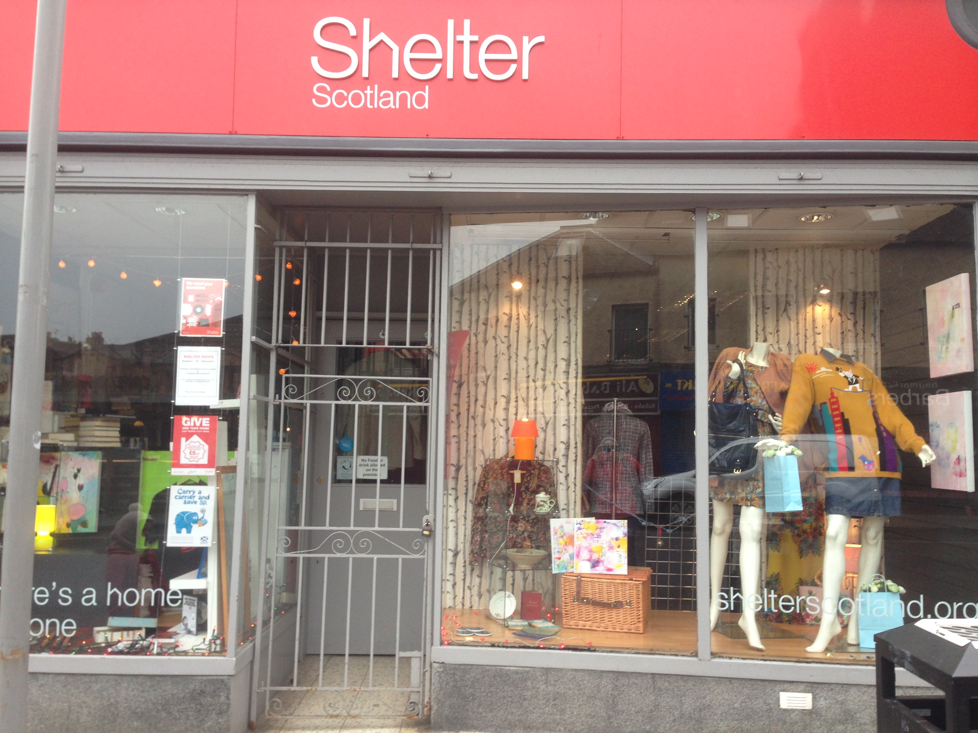 Den sidste butik vi besøgte ligger lige i starten af Dalry Road fra Haymarket Station og er den mest trendy. ‘Shelter’ hedder organisationen, der ejer butikken.