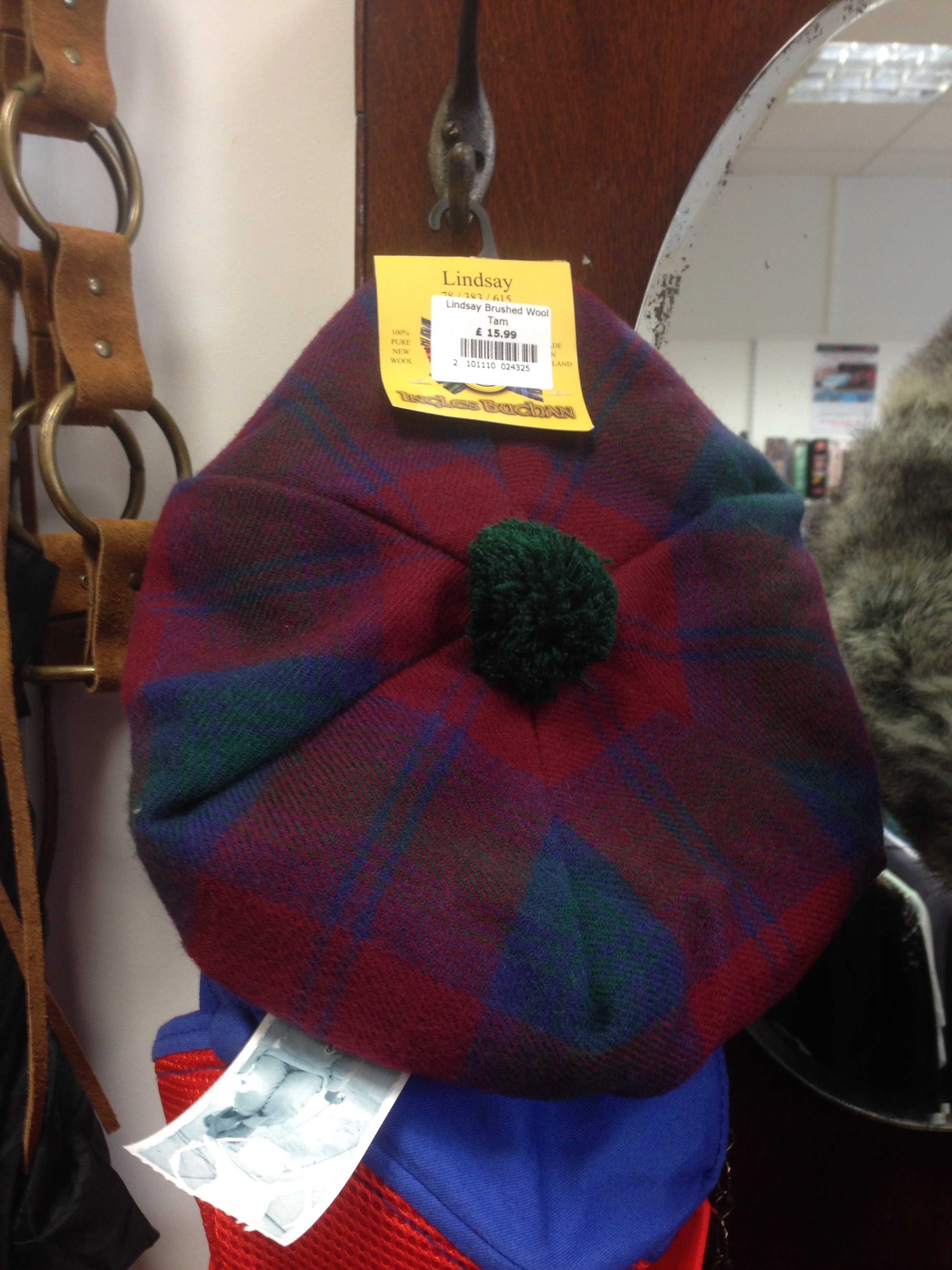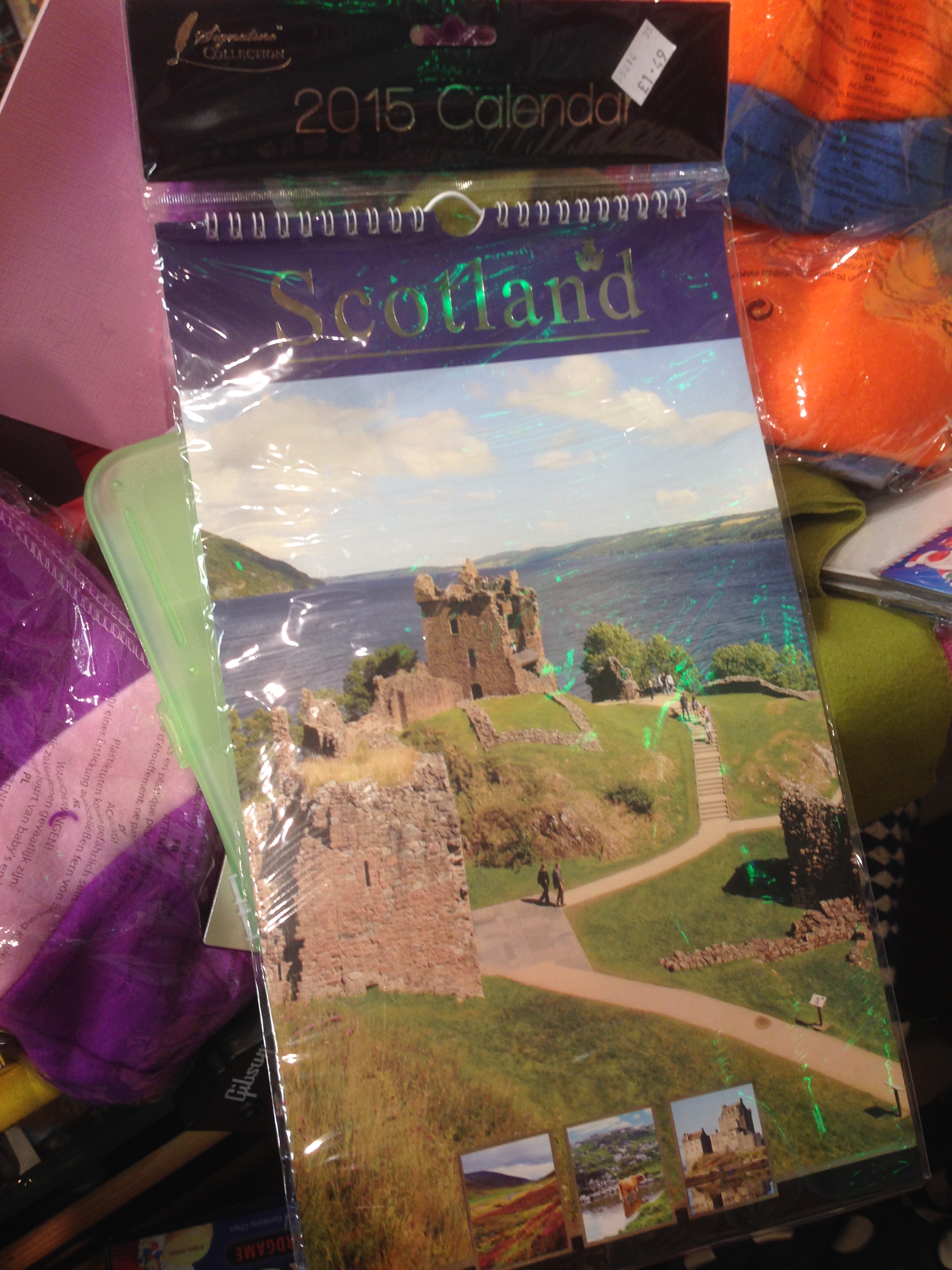 Her købte vi ikke noget, men fandt en masse souvenirs, stadig med prismærker, blandt andet et skotsk får (bamse), en kalender fra 2015, en skotskternet billedramme og hue.