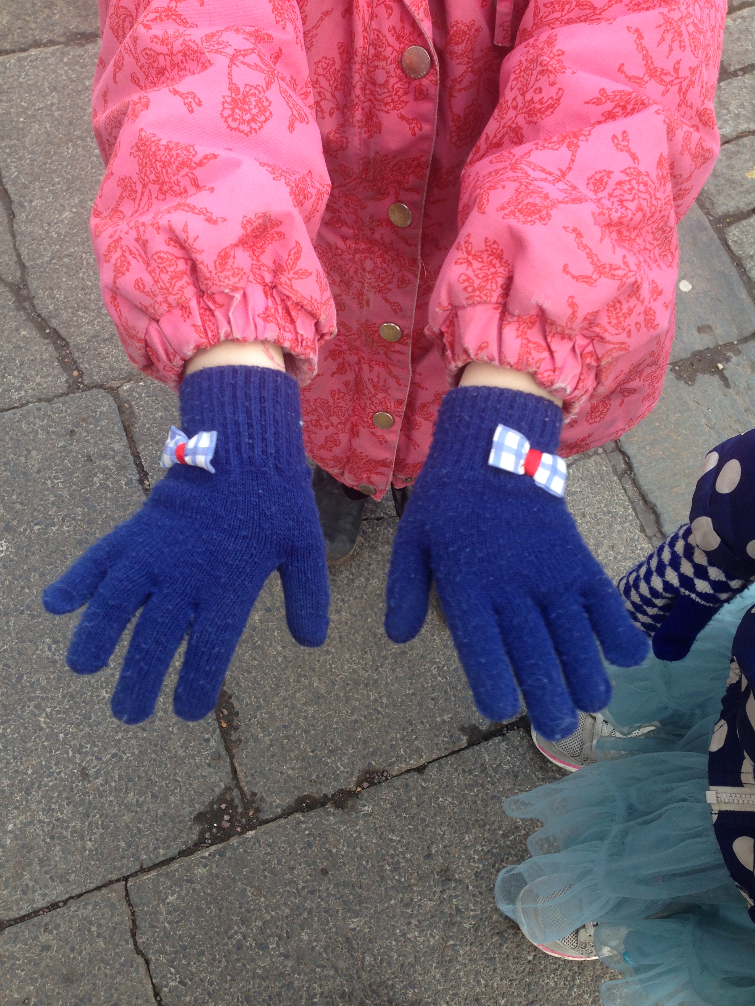 Jeg har også selv fundet på noget lignende og har syet sløjfer på disse blå vanter.