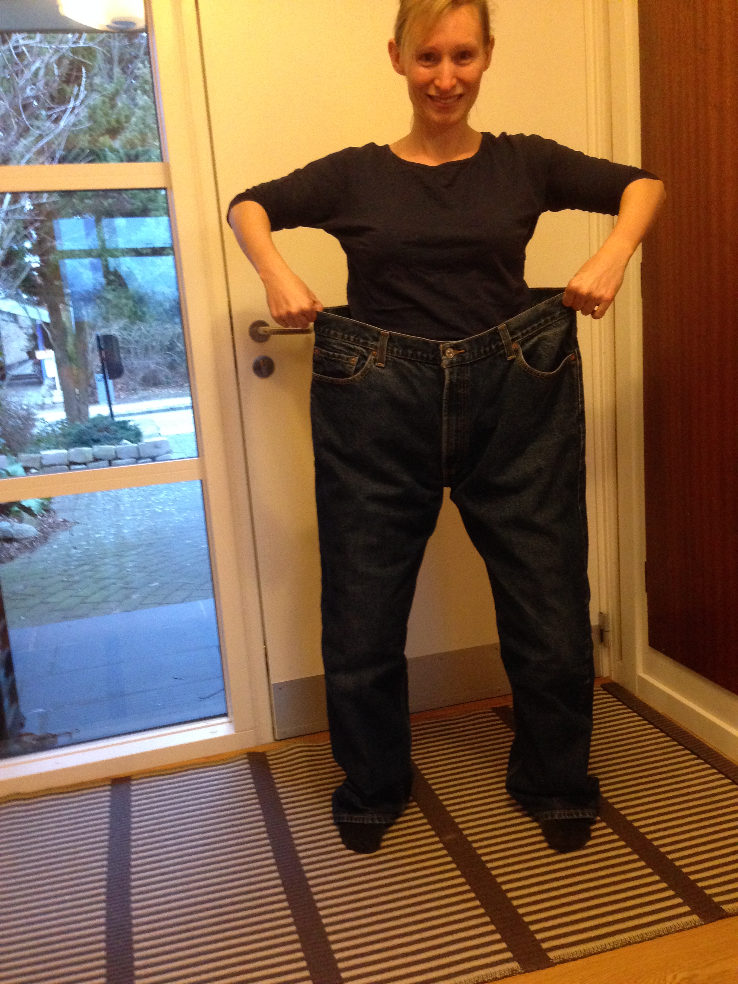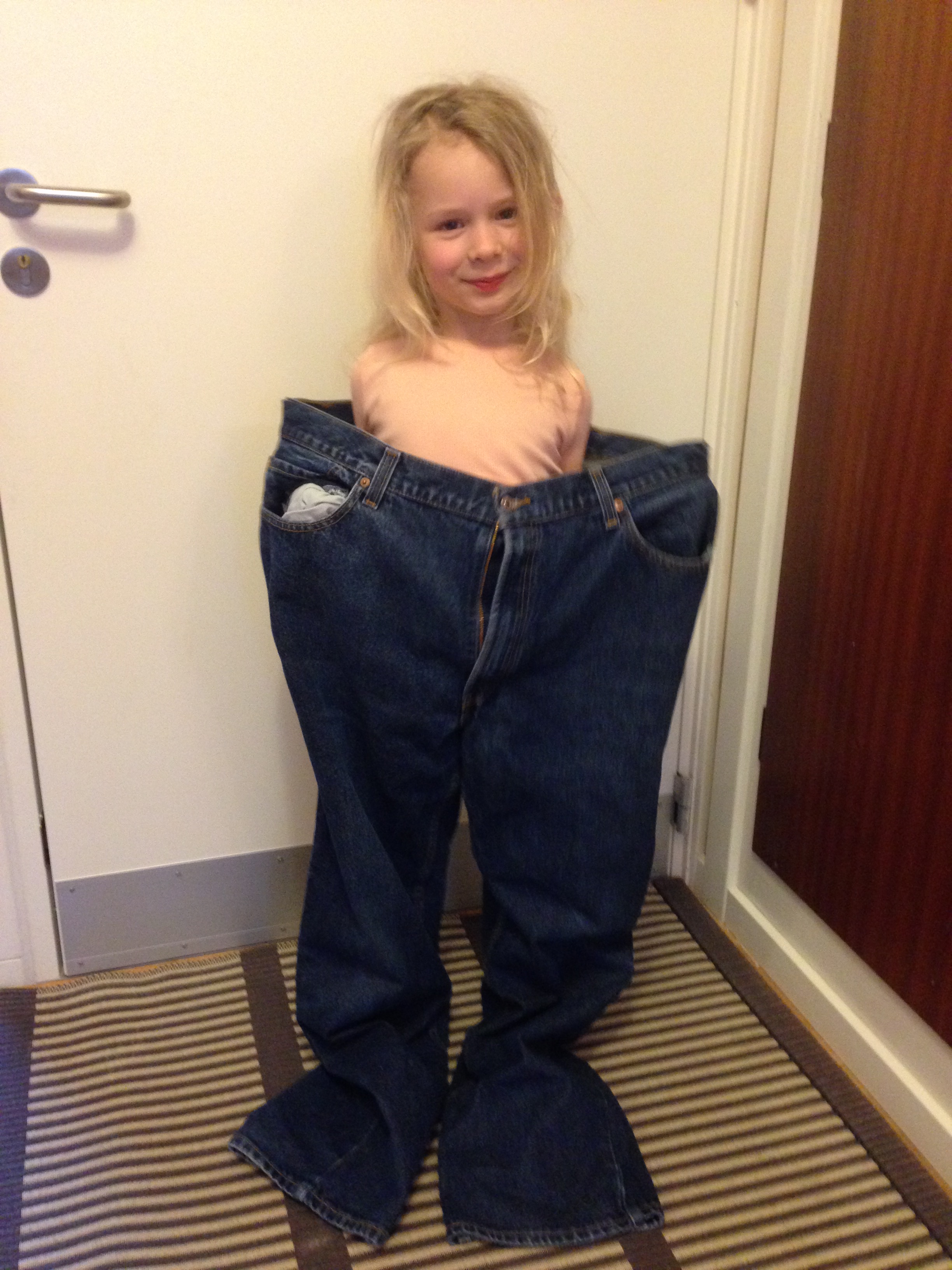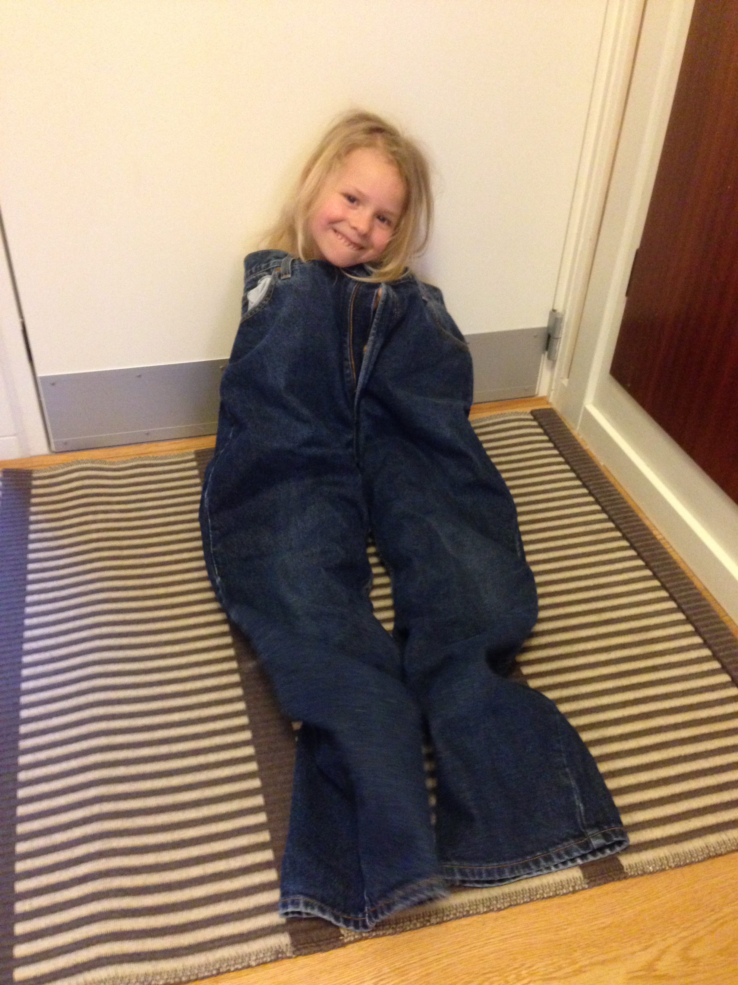 Inden lommerne blev syet på, fik vi meget sjov ud af at lege med kæmpebuksen.