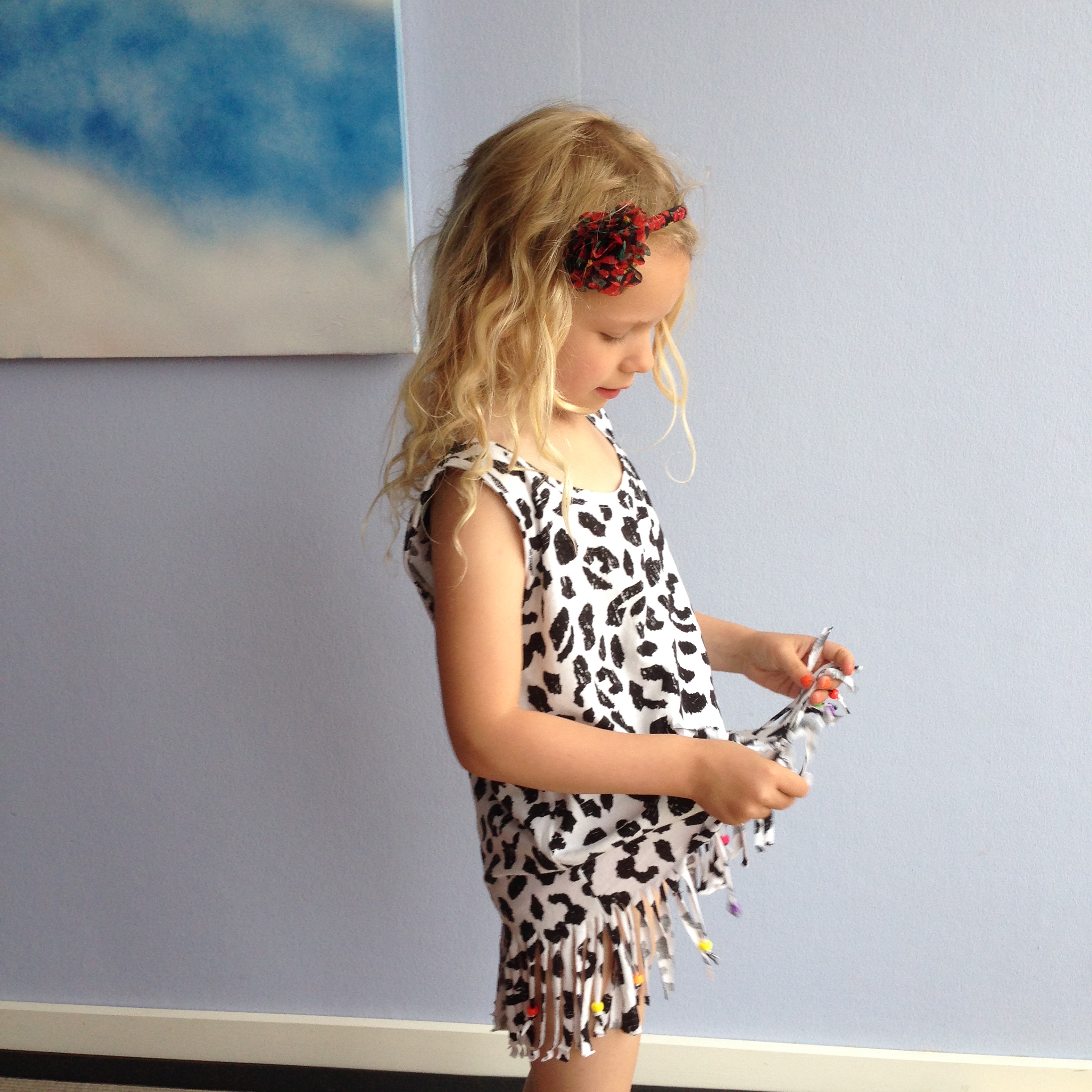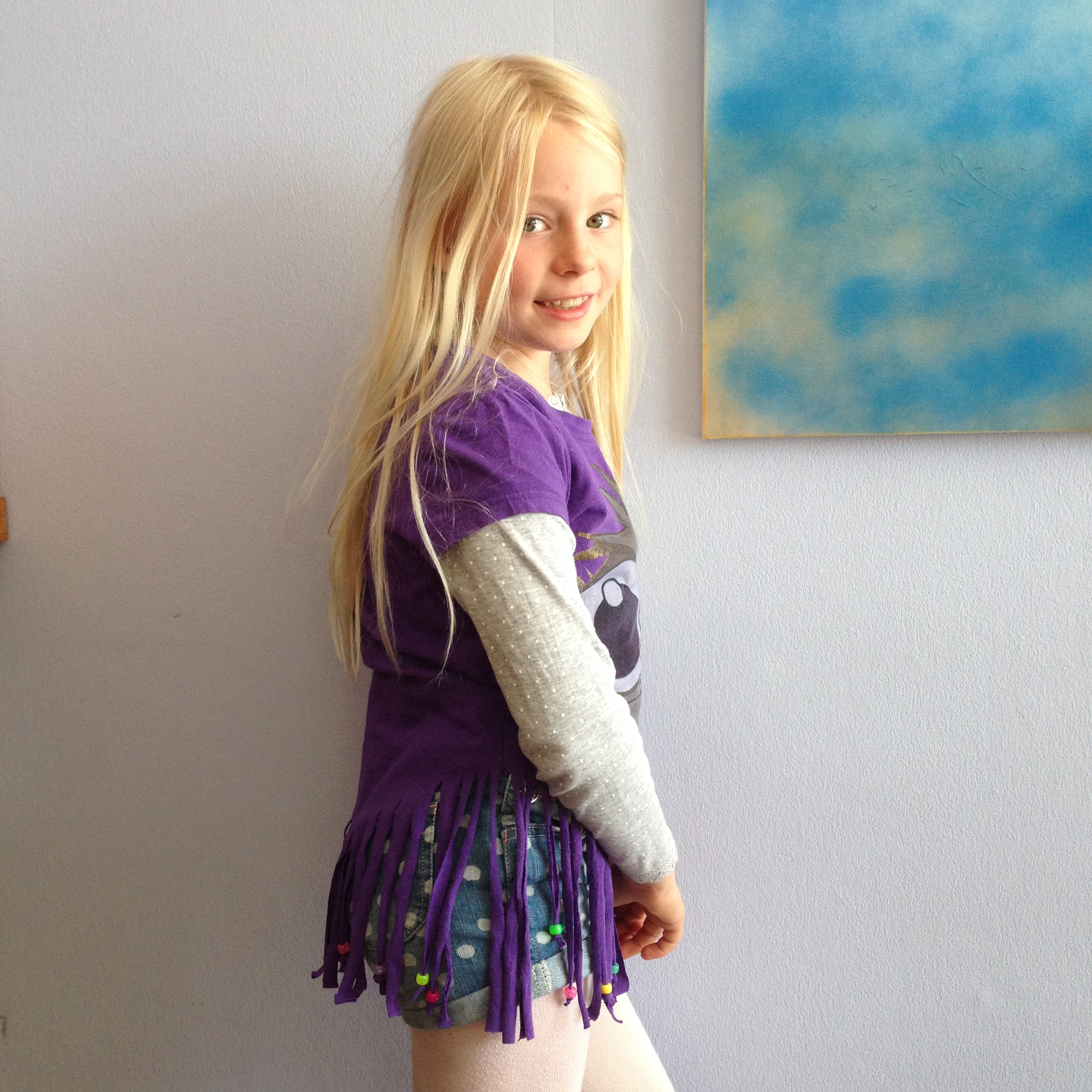 Sommertøj med frynser var bare ‘totalt yndlings’, da jeg var barn i 80’erne, så det skal mine piger heller ikke snydes for. Desuden er det nemt at lave frynser på f.eks. en bomulds T-shirt. Så nemt, at børn selv kan lave dem. Du kan se pigernes egne kreationer her.