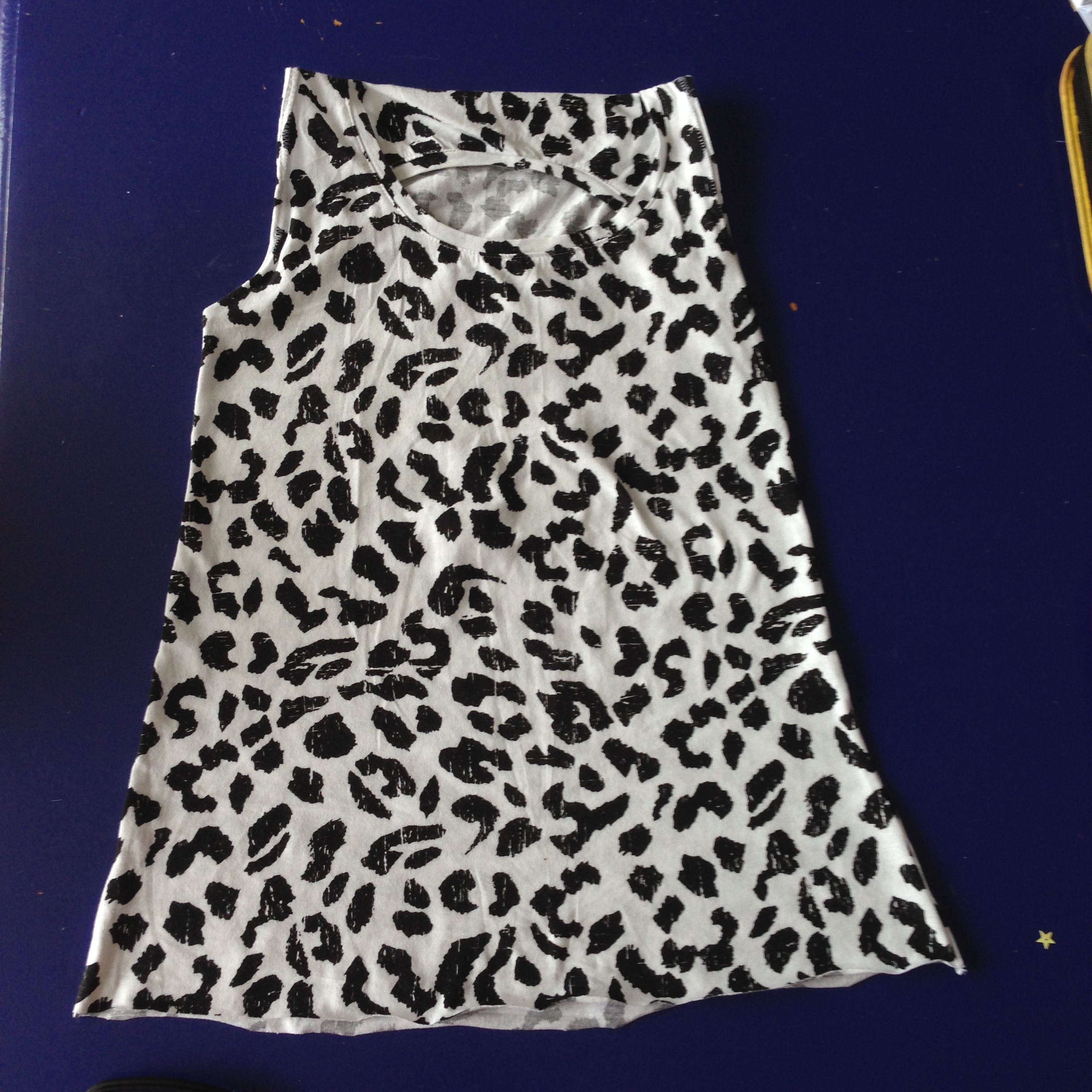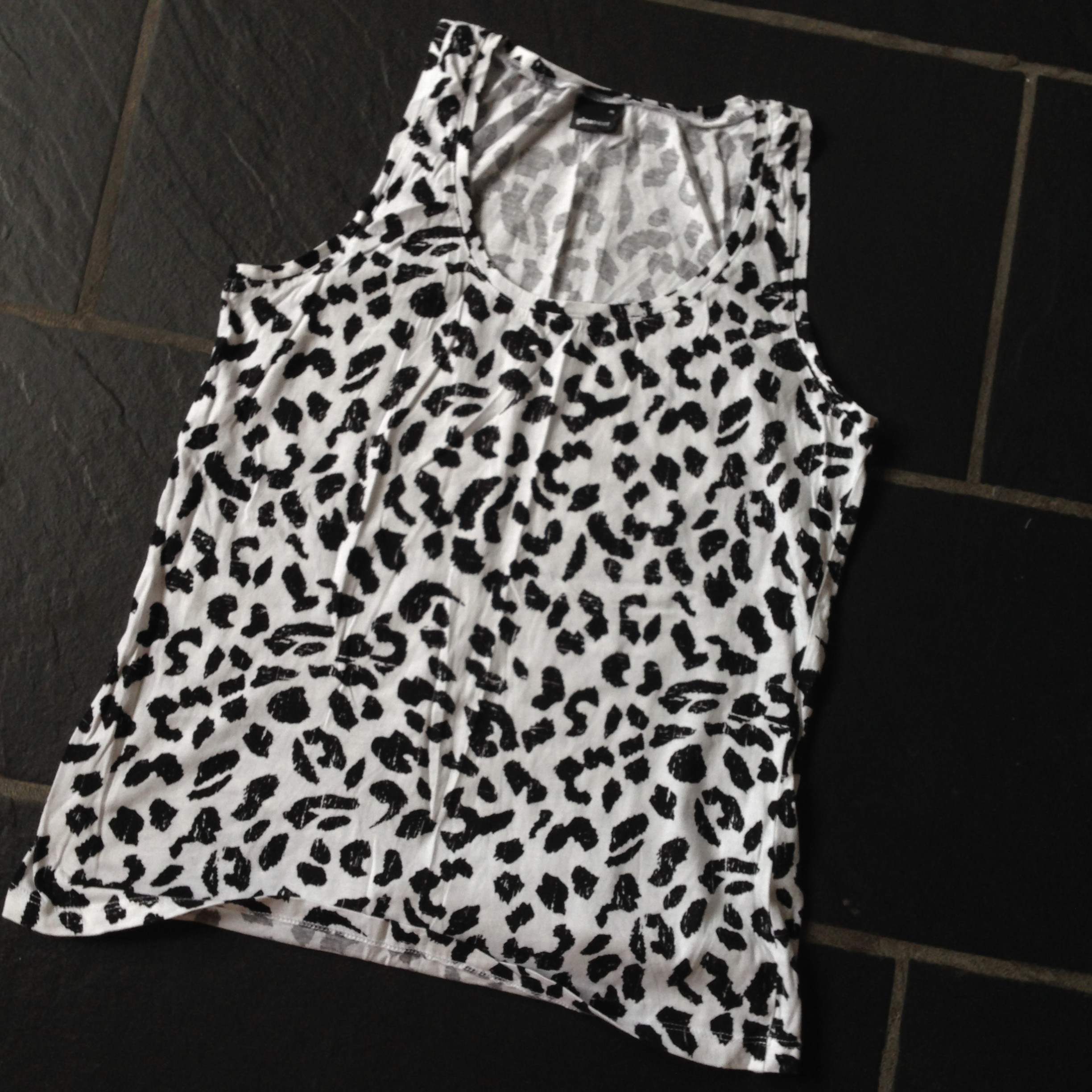 Til lillesøster fandt vi en top med sort leopardmønster i kassen med aflagt tøj.