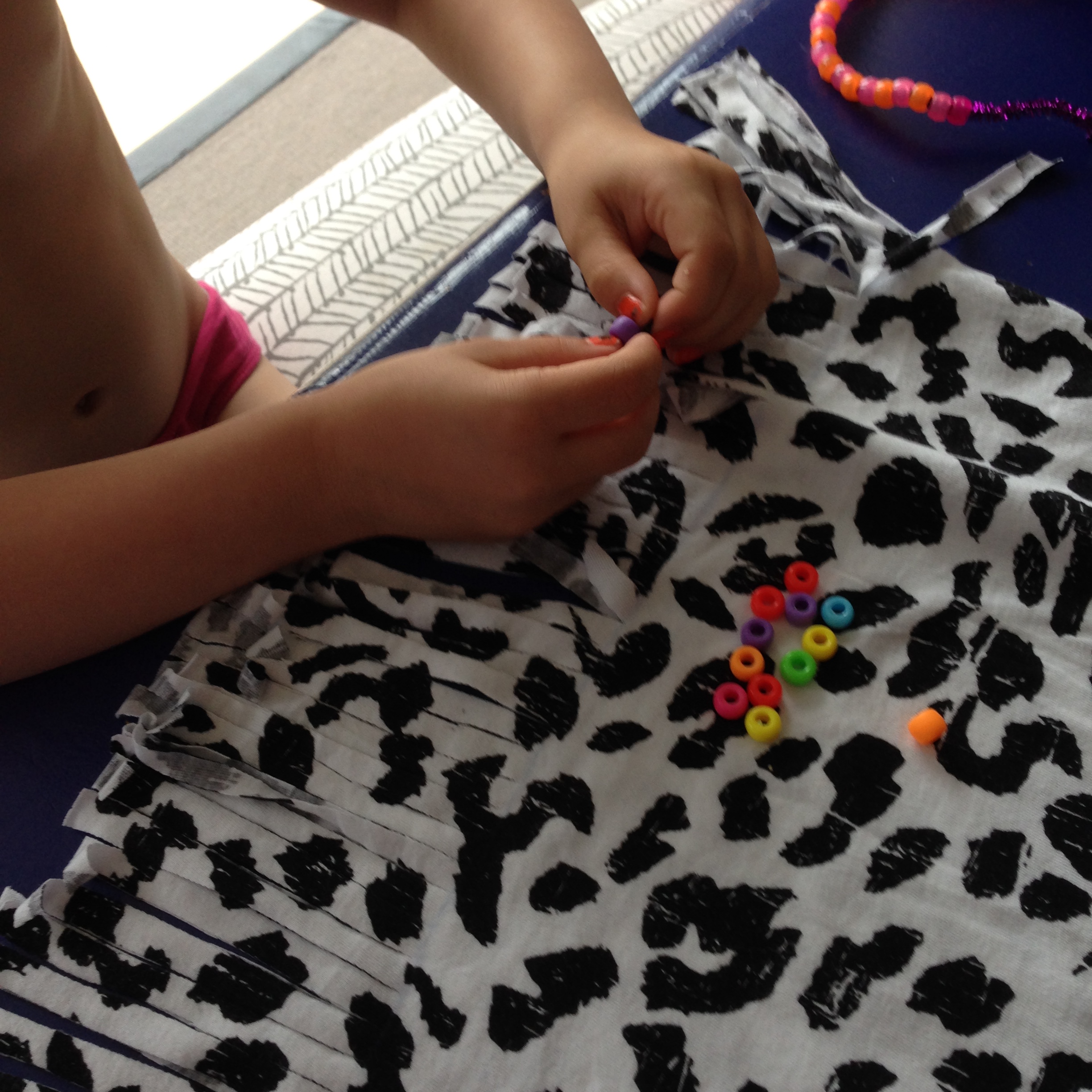 Jeg hjalp til med at klippe frynserne, men perlerne satte hun selv på.