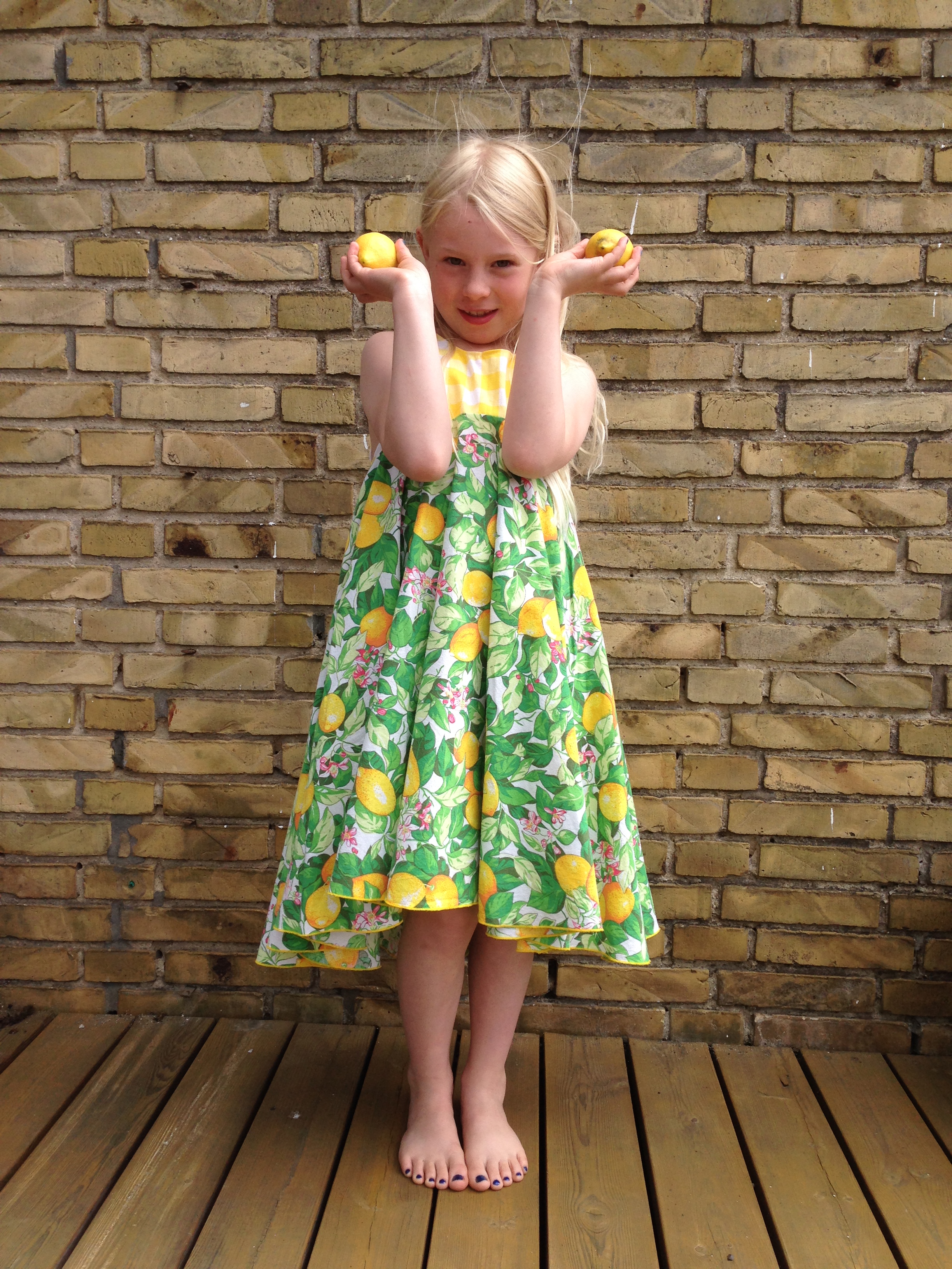 Kjolen blev måske lige bred nok ved bryststykket, men ellers er den rigtig fin. Og så havde vi meget sjov ud af at tage “citronfotos”.