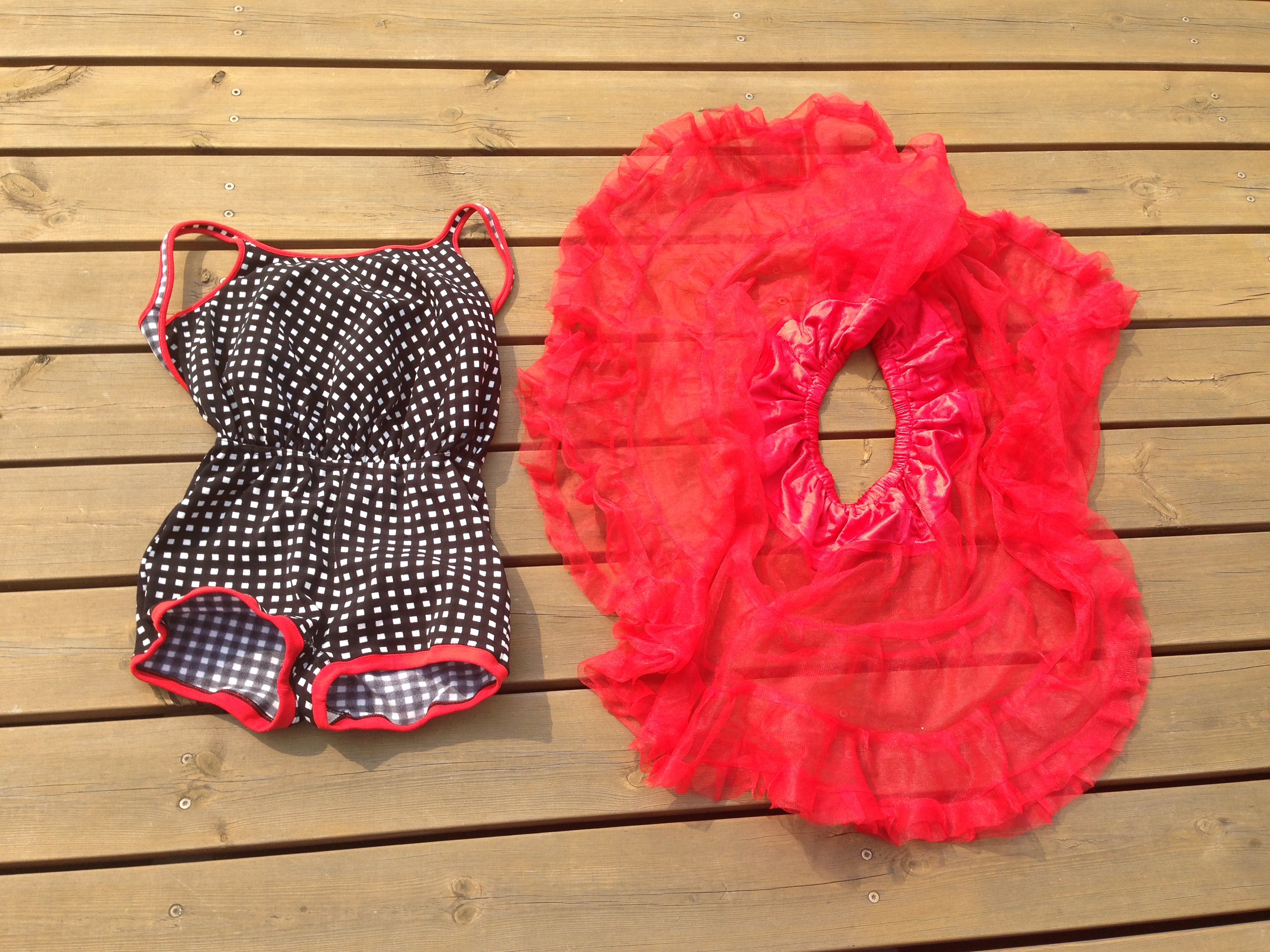 Som hovedingrediens for mit kostume havde jeg fundet min mors gamle badedragt frem. Sidst jeg havde den på, var til sidste skoledag i folkeskolen. Bag på havde jeg syet et rødt tylskørt. Så var der gøglerjakken, som hang i skabet og er købt i H&M engang.