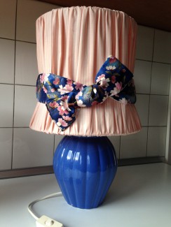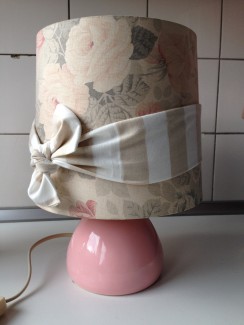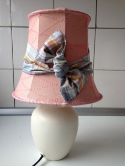 Lampen til mellemste søster har en skærm, som jeg ikke har gjort andet ved, end at give den en grundig rengøring med en klud og lidt sæbe. Og så er der også sat en sløjfe på – så ingen er snydt for sløjfer 😉