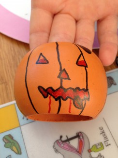Ideen kan også bruges i andre sammenhænge (måske til jul) og med servietringe med andre farver – f.eks. grønne til halloweenmonstre eller hvide til spøgelser/mumier.