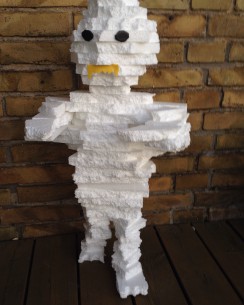 Desværre fik jeg ikke nået at gøre meget ud af udsmykningen af forhaven, så jeg ligger stadig inde med MANGE mælkekartoner, som altså ikke blev til en kæmpe mumie i år. Du får i stedet mit afskyelige flamingomonster (som jeg tidligere har skrevet om her) at se, som da også pyntede rigtig fint.