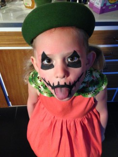 Det er nu andet år, at vi går all-in på det der halloween. Man kan mene meget om den amerikanske halloweentradition, som nu er nået de danske forsteder, men børnene elsker det (endda mere end fastelavn), og det er så stort i vores villakvarter, at man ikke kan undgå at tage del i festlighederne – med mindre man er en tarvelig forældre! Og har man tilmed en kreativ åre som mig og er til udklædning, er det oplagt at give den hele armen til halloween.