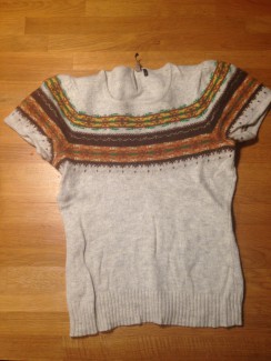 Fra bunken af trøjer, som jeg har lagt til side til brug i syprojekter, fandt jeg min søsters gamle kortærmede strikbluse.