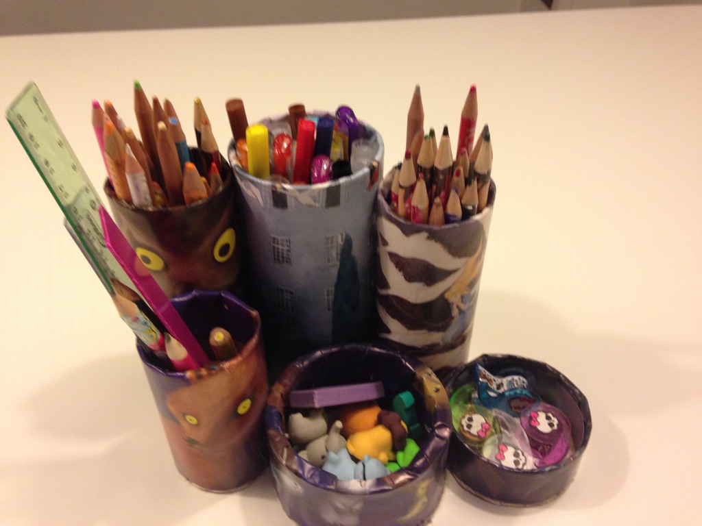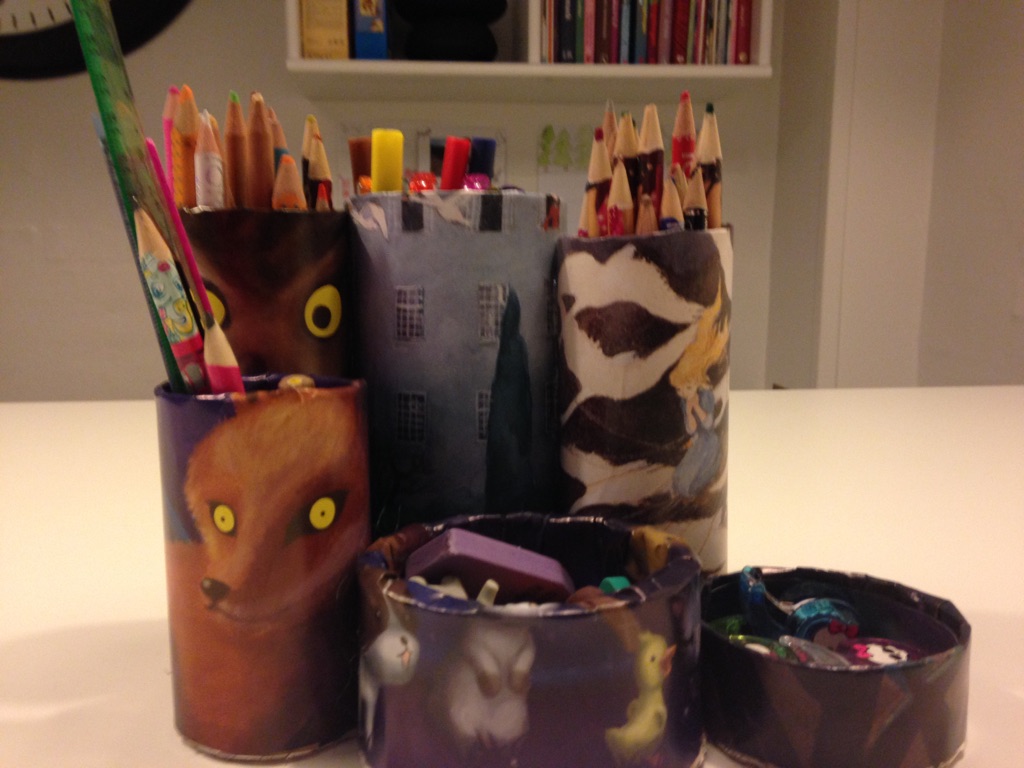 Så fik min kusine og jeg tid til at ses igen og bygge flere kreastationer, som jeg kalder dem. Det var især min kusines ældste datter, der havde set den kreasatation, som vi fik lavet i tv-programmet ‘Fra yt til nyt’, der gerne ville bygge sin egen. De andre tøser fulgte trop og fik lavet hver deres søde og sjove opbevaringsløsning til blyanter, viskelæder og andet kreagrej.