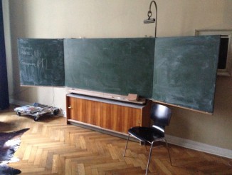 Lejlighedens suverænt fedeste genbrugsting var efter min mening denne kæmpe tavle, der vel tidligere har været brugt på en skole eller anden undervisningssammenhæng. Vi nåede lige at spille en enkelt gang Tegn og Gæt på den 🙂