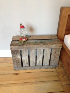 Andre steder i lejligheden var der brugt trækasser og andre elementer som sofa- og natborde.
