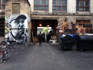 Her er en anden meget stilfuld butik, også med mange genbrugselementer, som lå i en baggråd med et ret så lækkert graffitiportræt.
