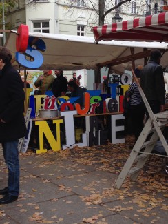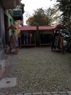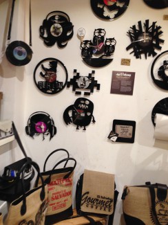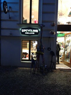 Så har Berlin sin egen upcycling butik. Der var mange af de helt typiske redesign genstande, som f.eks. lp’er bøjet til skåle og punge syet af transportsække til fødevarer, til salg her. Desværre ikke mange ting, som jeg kunne finde på at købe eller kopiere, på nær en enkelt mega god idé. Den vil jeg, så snart jeg får tid i det nye år, forsøge at føre ud i livet. Indtil da må du nøjes med billeder af butikken og dens øvrige sager.