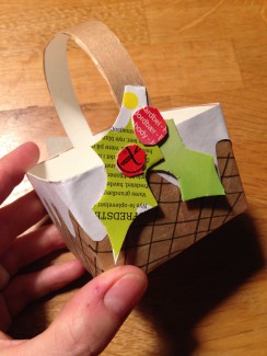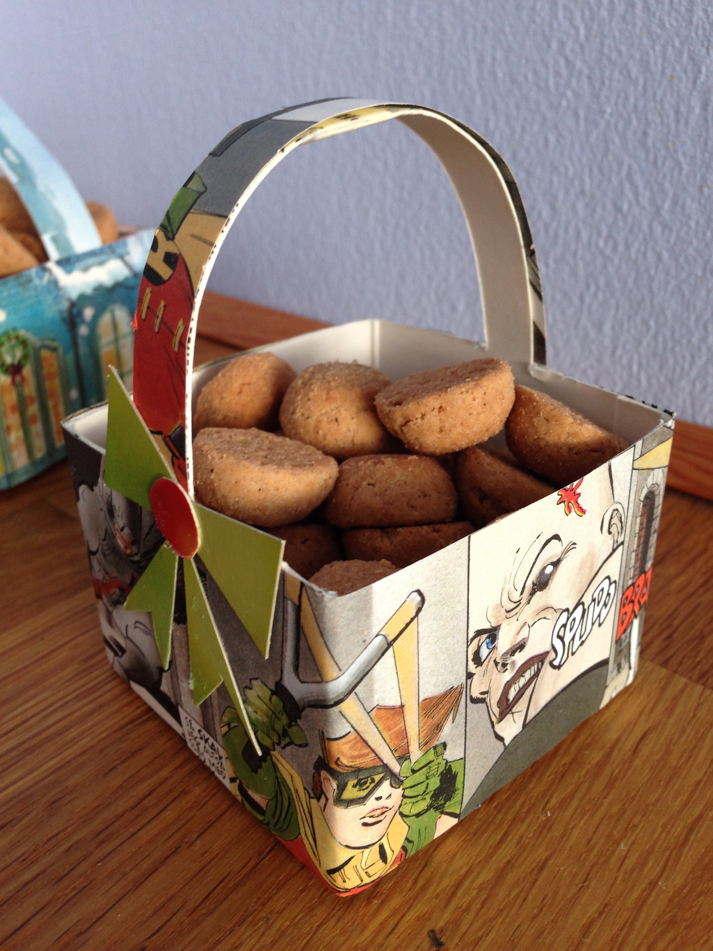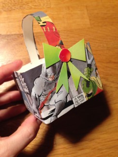 Jeg fandt også en Batman tegneserie, og fik lavet denne kurv – nok mere sej (og voldelig) end juleagtig.