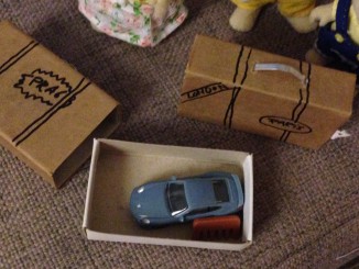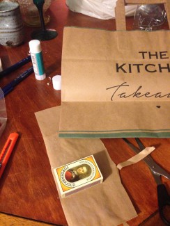Dyrene fik også to små kufferter lavet af tændstikæsker betrukket med brunt papir fra en bærepose og med en lille metalhank.
