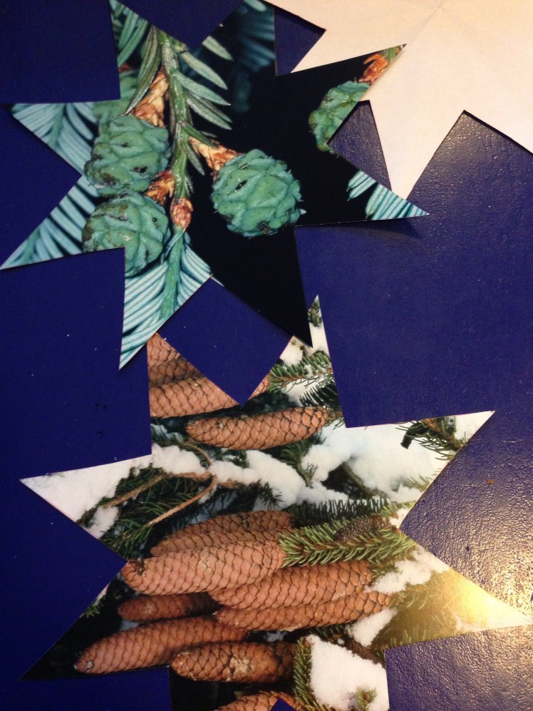 Jeg havde også købt to brugte plakater til at klippeklistre julepynt af. De blev også til stjerner. Og der var papir til nogle store af slagsen.